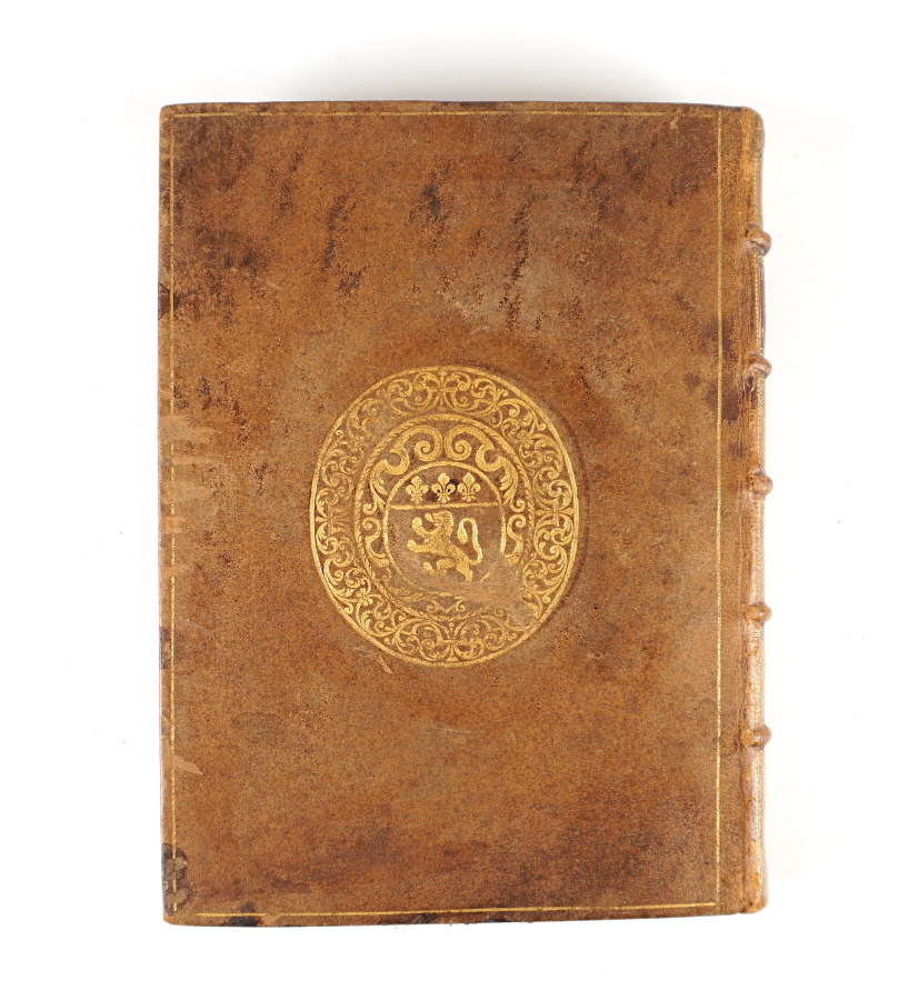 CATROU (Père François) - Histoire des Anabaptistes - Paris ; Claude Cellier, 1706 - 1 volume In-4° - Frontispice portant le titre « Histoire du fanatisme dans la religion protestante depuis son origine » manquant, [20], 463, [14] pages - Pâles rousseurs en tout début et fin d'ouvrage - Vignette au titre, 1 bandeau gravé par Scottin le Jeune d'après Bona - Reliure de l'époque basane havane aux armes de la ville de Lyon (mors frottés, de rares taches et discrètes épidermures aux plats) - Filet doré encadrant les plats - Dos à nerfs orné (quelques dédorures) - Pièce de titre maroquin bordeaux - Tranches rouges - Étiquette de prix décerné à Henri Dervieu d'un collège lyonnais en 1724 au 1er contre plat, et ex-libris gravé et armorié : Arthur Brölemann en page de garde marbrée en regard.