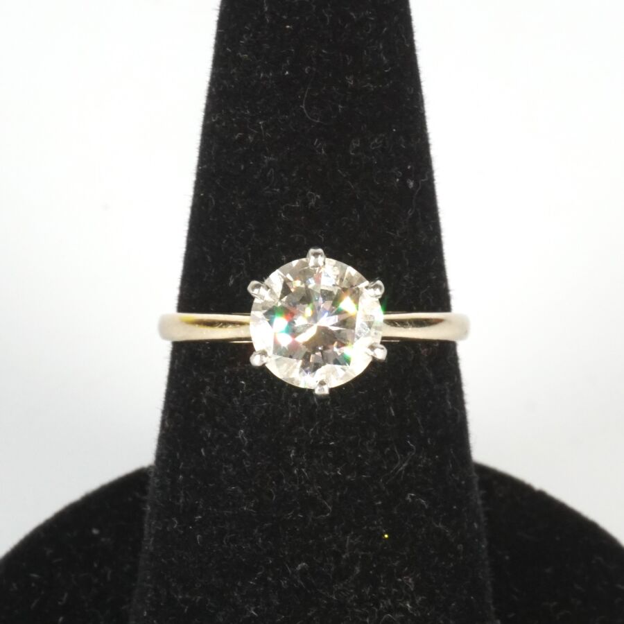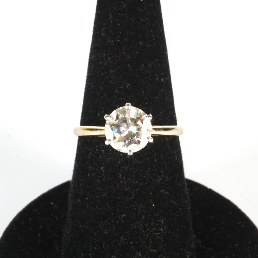 CERTIFICAT GARANTIE Solitaire, monture en or gris 18K (750/oo) serti six griffes d'un diamant taille brillant calibrant 2.04 cts environ (D. 8 mm), sans fluorescence, TDD. 57. Poids brut : 3.3 g environ (AC).