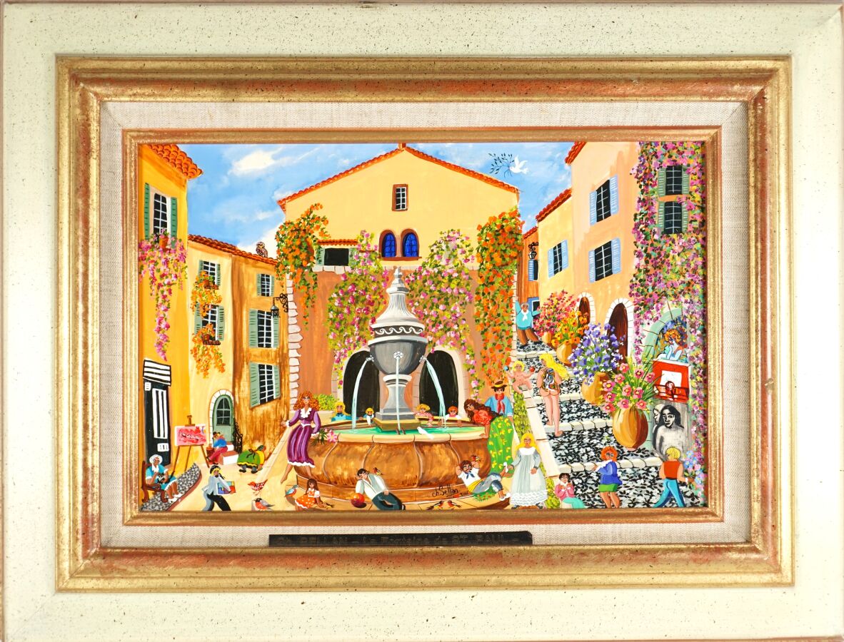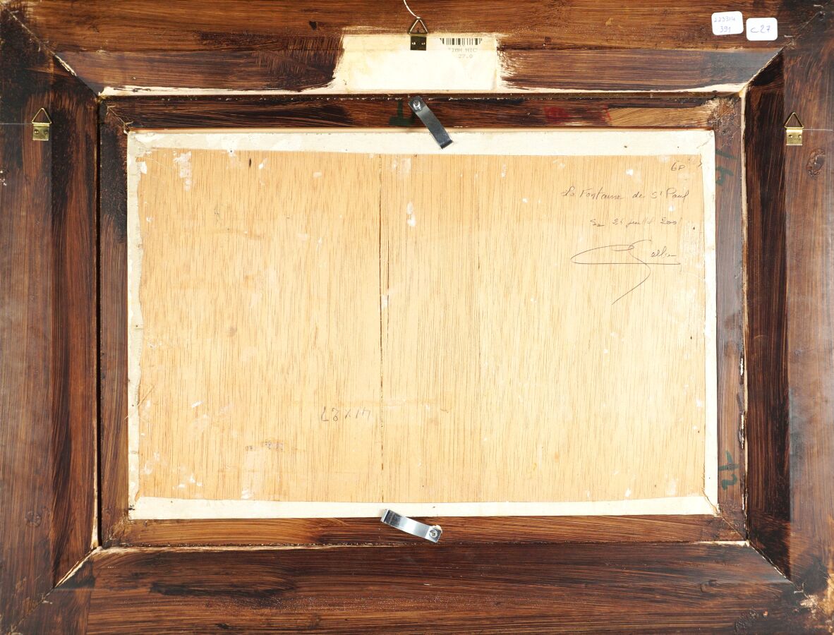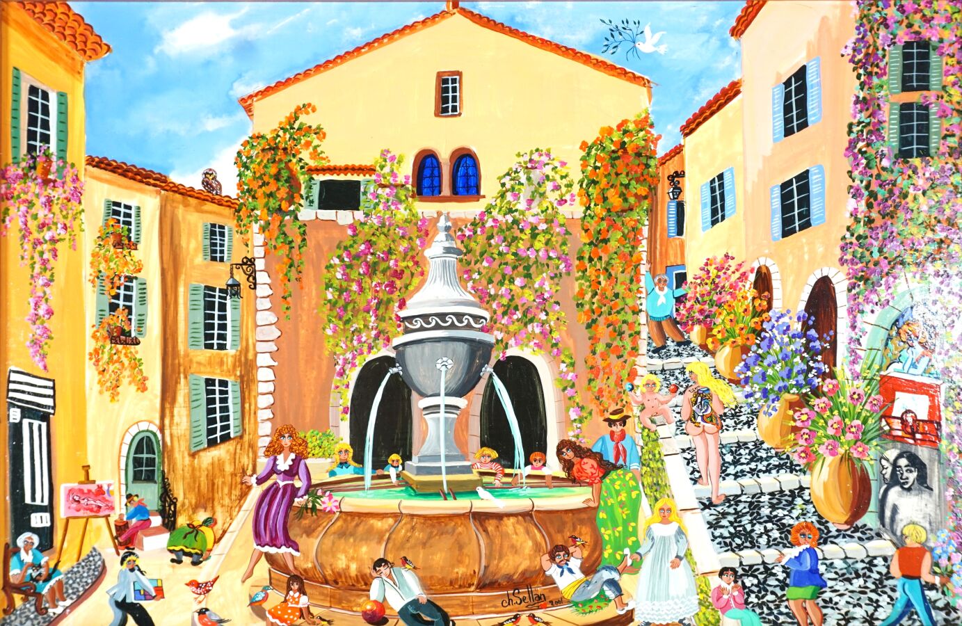 Ch. SELLAN (XXe), "La fontaine St. Paul" 2001, huile sur toile marouflée sur panneau, signée et datée en bas au centre, 27 x 41 cm.