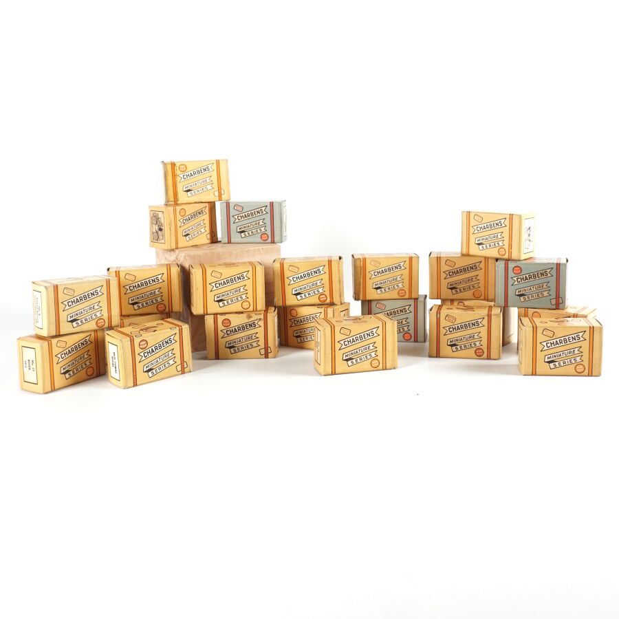 CHABRENS MINIATURE SERIES : Ensemble de 21 véhicules divers dont Rolls-Royce Silver Ghost 1906, réf. 8 ; Morris Cowley 1922, réf. 21 ; Autocarrier 1904, réf. 23 ; Rocket-trailer 1850, réf. 15 ; Horse transport 1927, réf. 19, etc. On joint un dernier véhicule accidenté. Présentés dans leurs boîtes d'origine (usures aux boîtes, quelques usures et traces).