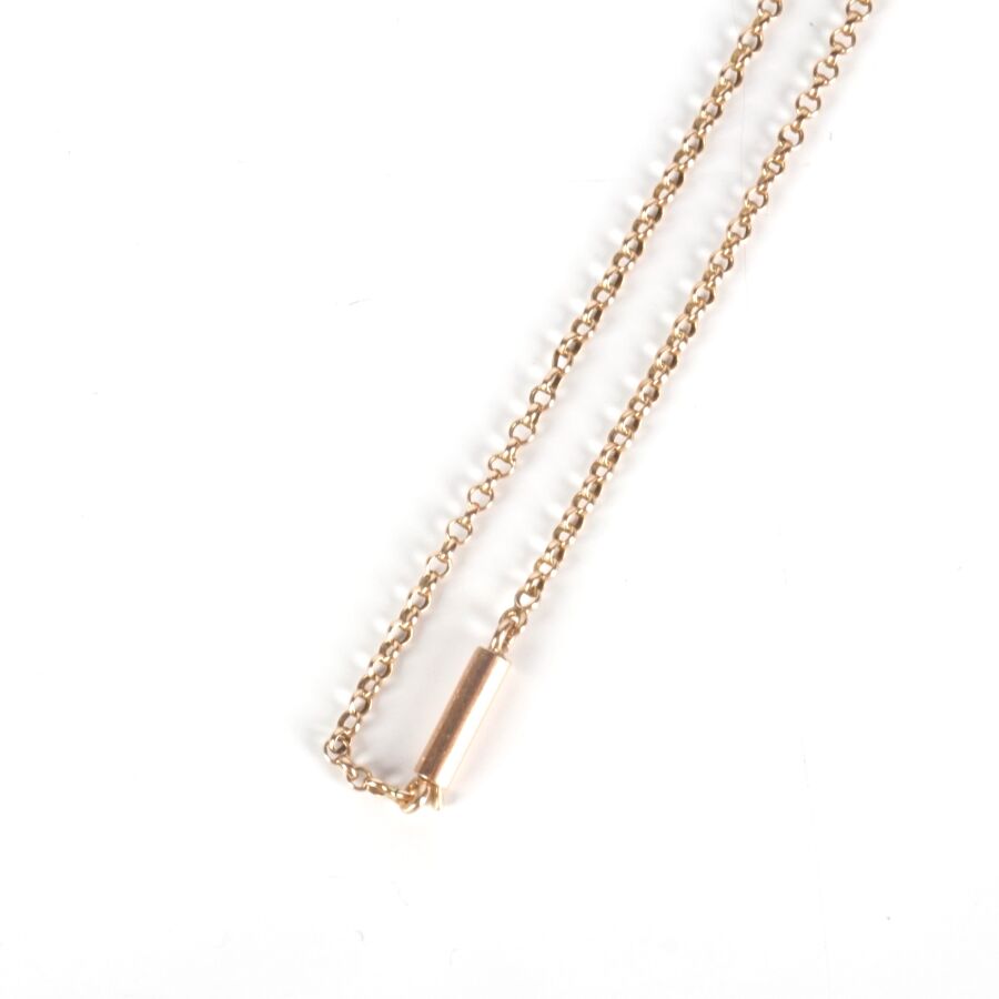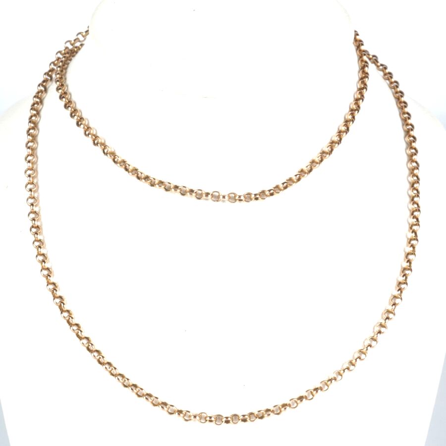 Chaîne en or jaune 14K (585/oo), maille jaseron, fermoir à cliquet de forme cylindrique, L. 44.5 cm. Poids brut : 3.4 g environ.