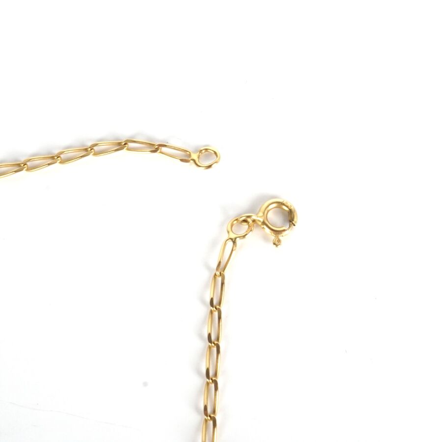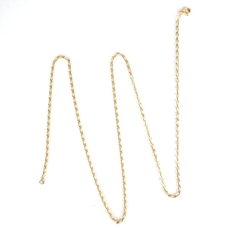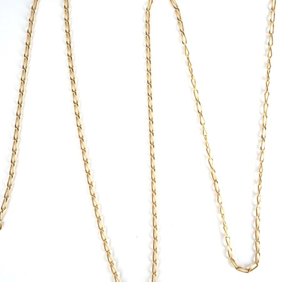 Chaîne en or jaune 18K (750/oo), maille allongée, fermoir à anneau ressort, L. 67.5 cm. Poids brut : 6.9 g environ.