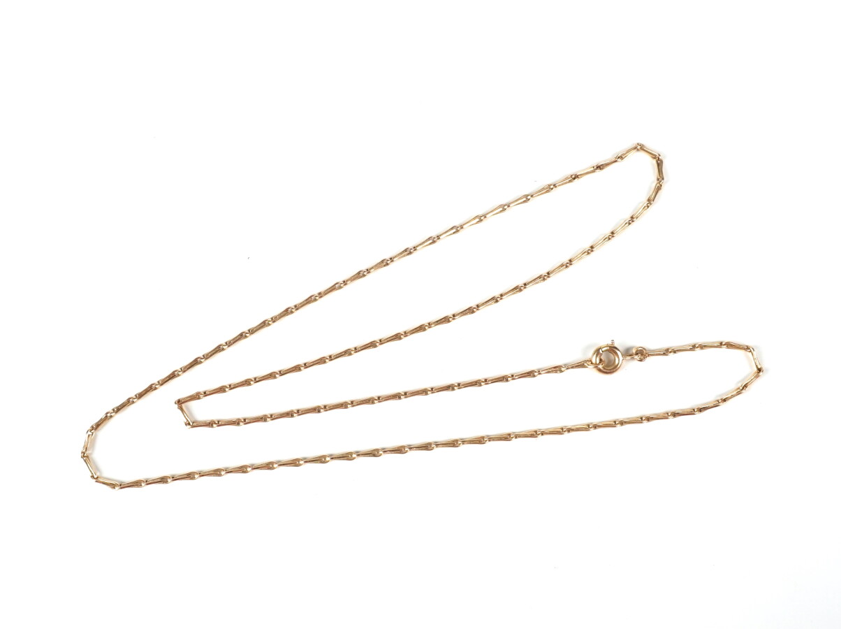 Chaine en or jaune 18K (750/oo), maille allongée, fermoir mousqueton, L. 48 cm. Poids brut : 5.4 g environ.