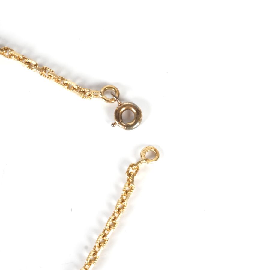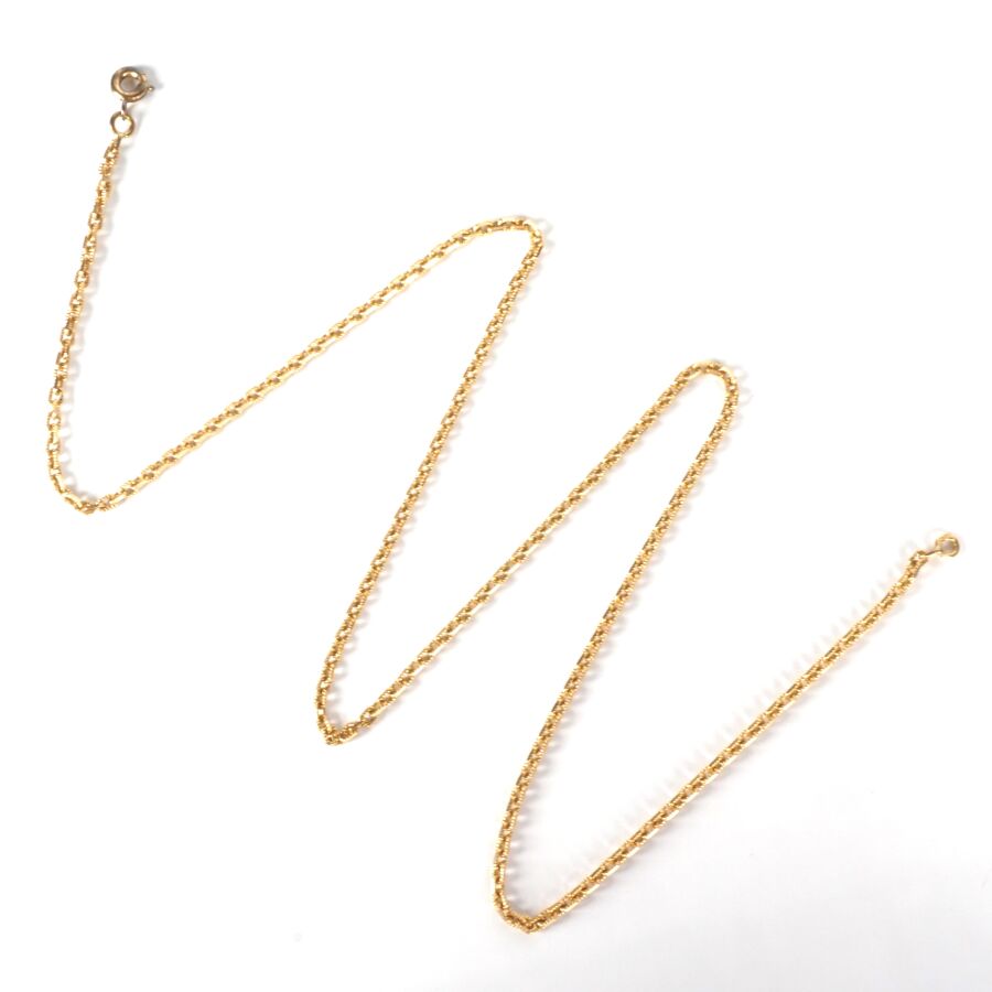 Chaîne en or jaune 18K (750/oo), maille forçat ciselée, fermoir à anneau ressort, L. 50.8 cm. Larg. 2 mm. Poids brut : 9.6 g environ.