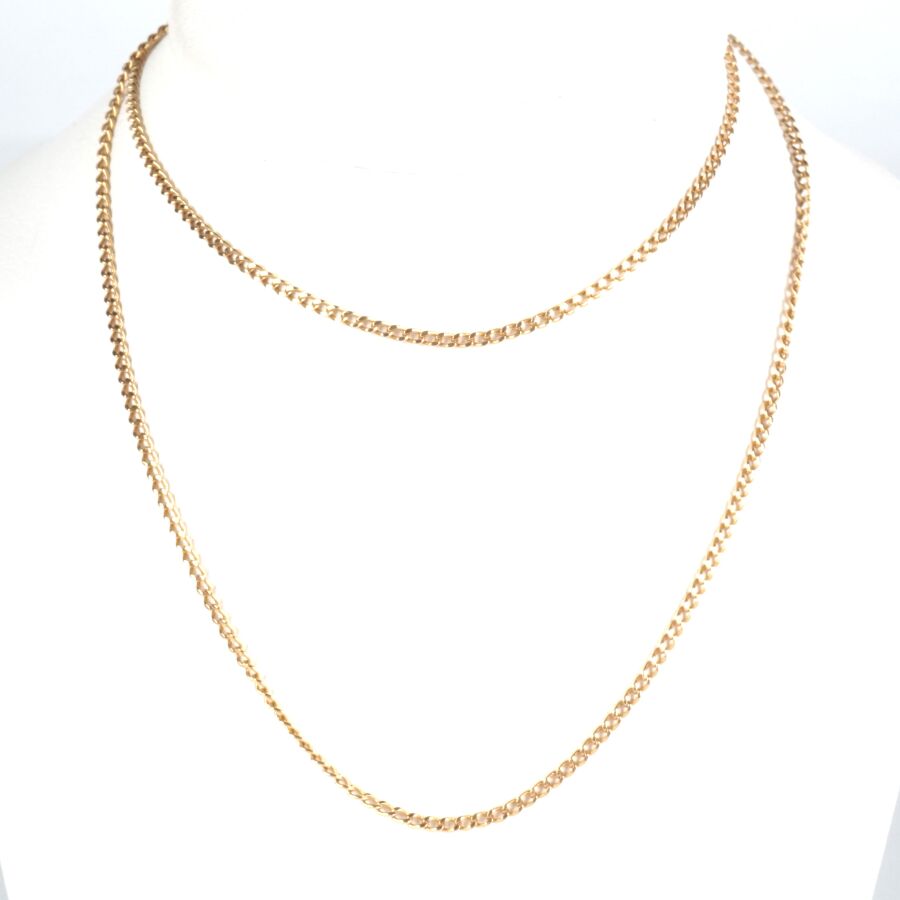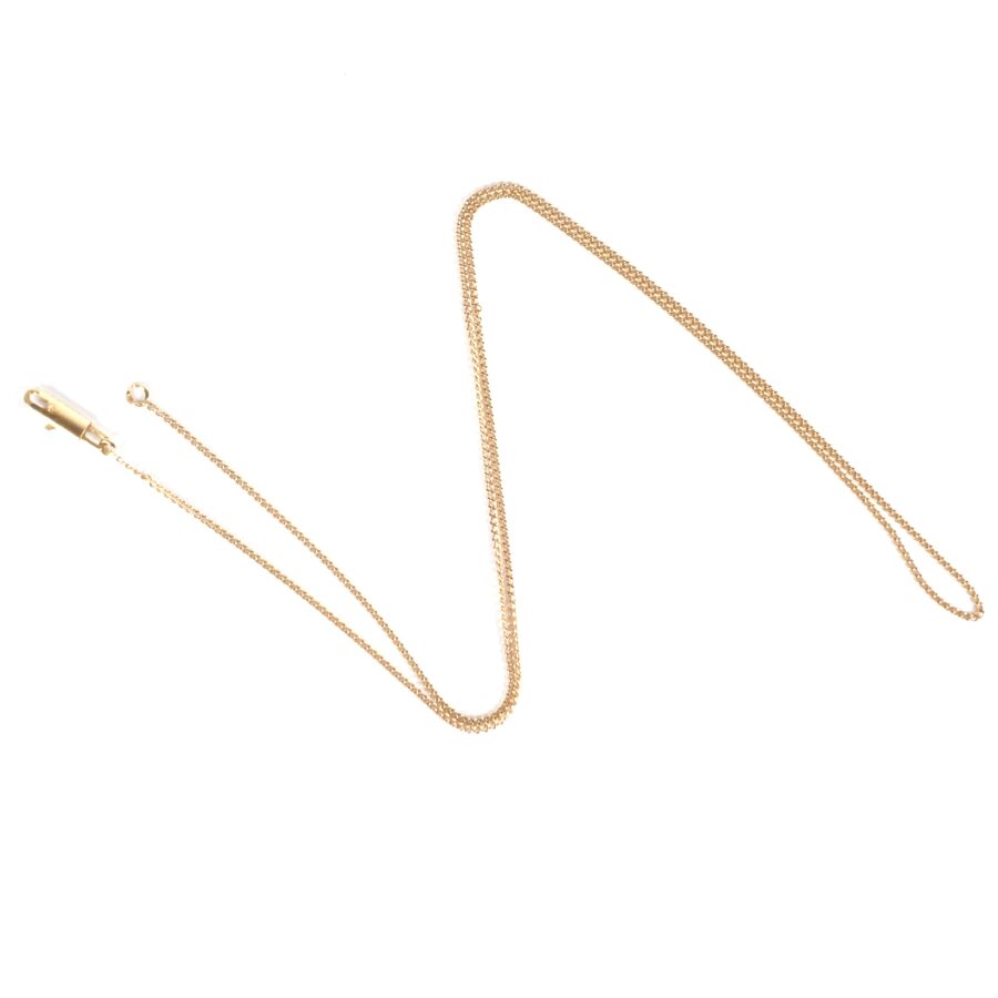 Chaîne en or jaune 18K (750/oo), maille forçat, fermoir mousqueton, L. 51 cm. Poids brut : 2.5 g environ.