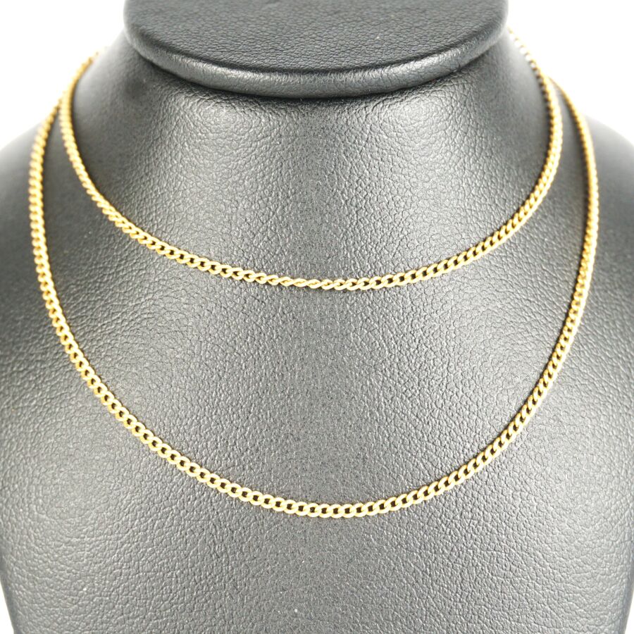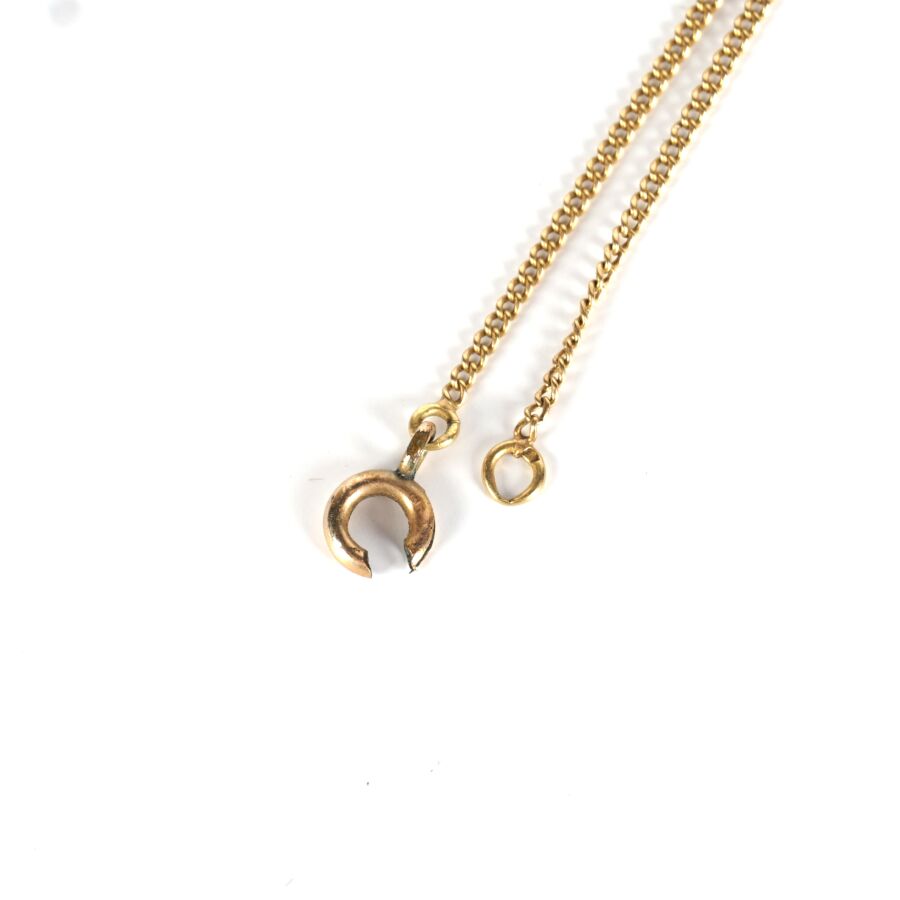 Chaîne en or jaune 18K (750/oo), maille forçat, fermoir à anneau ressort, L. 52 cm. Poids brut : 3.3 g environ (fermoir accidenté).