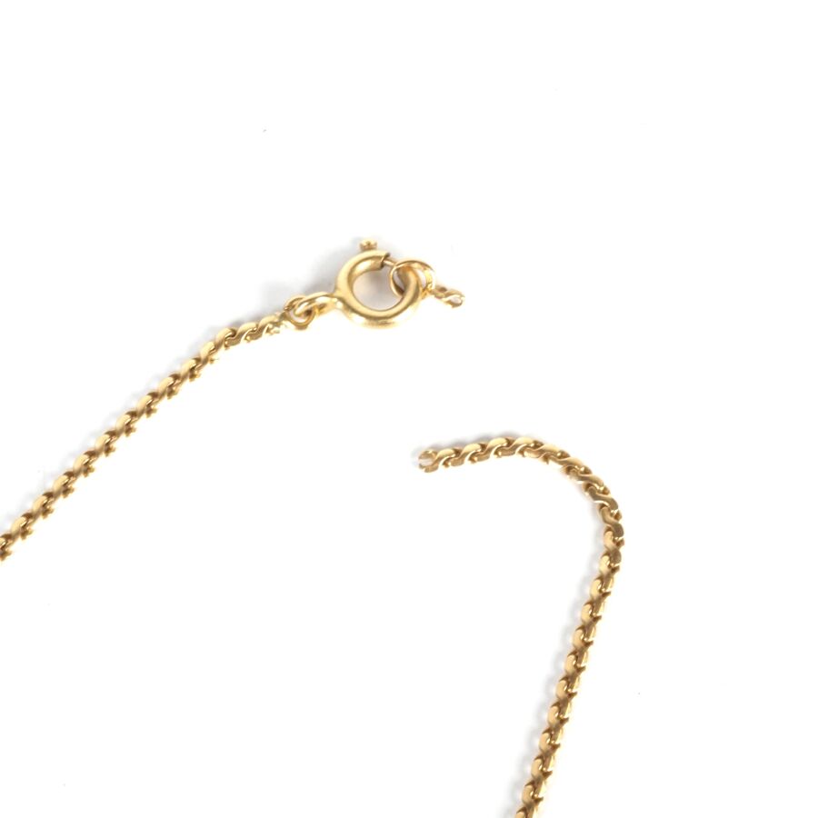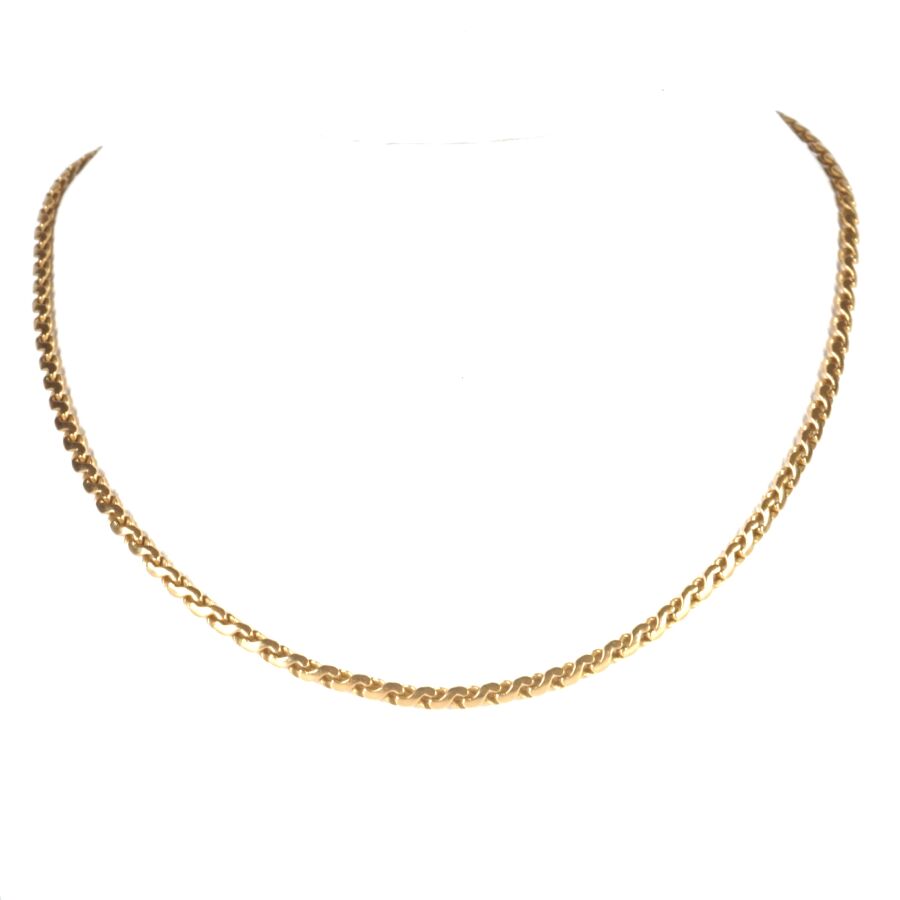 Chaîne en or jaune 18K (750/oo), maille tressée, fermoir à anneau ressort, L. 36.5 cm. Poids brut : 4.3 g environ (accidentée).