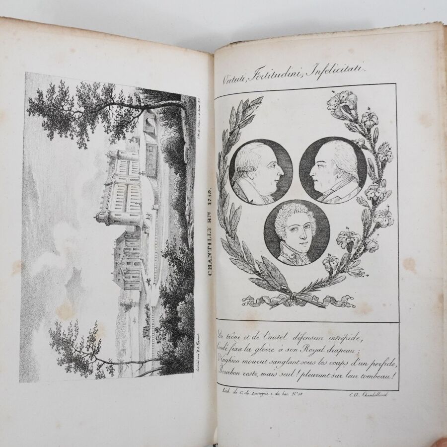 Le tome III contient les trois portraits de Condé, d'Enghien et de Bourbon lithographiés par Lasteyrie et réunis sur une même planche ainsi qu'une vue de Chantilly dessinée par Perrot et lithographiée par Villain.