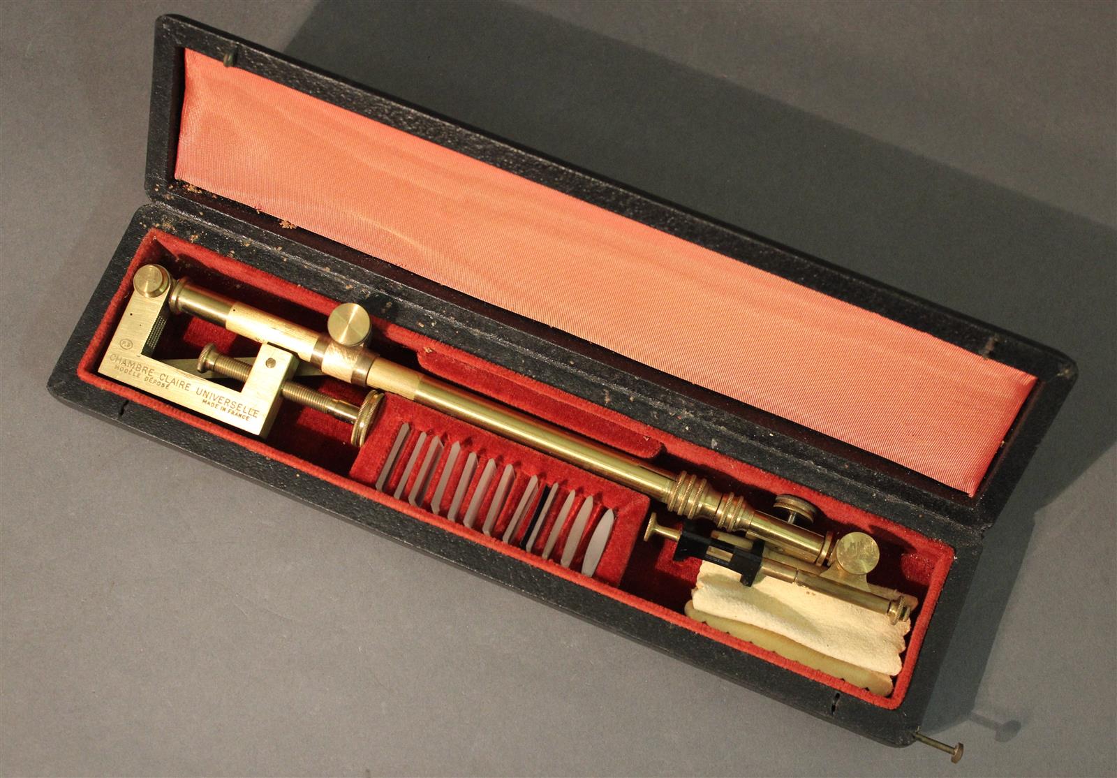 Chambre claire universelle, dans son écrin d'origine complète de ses lentilles, parfait état d'origine, L. du coffret : 28 cm