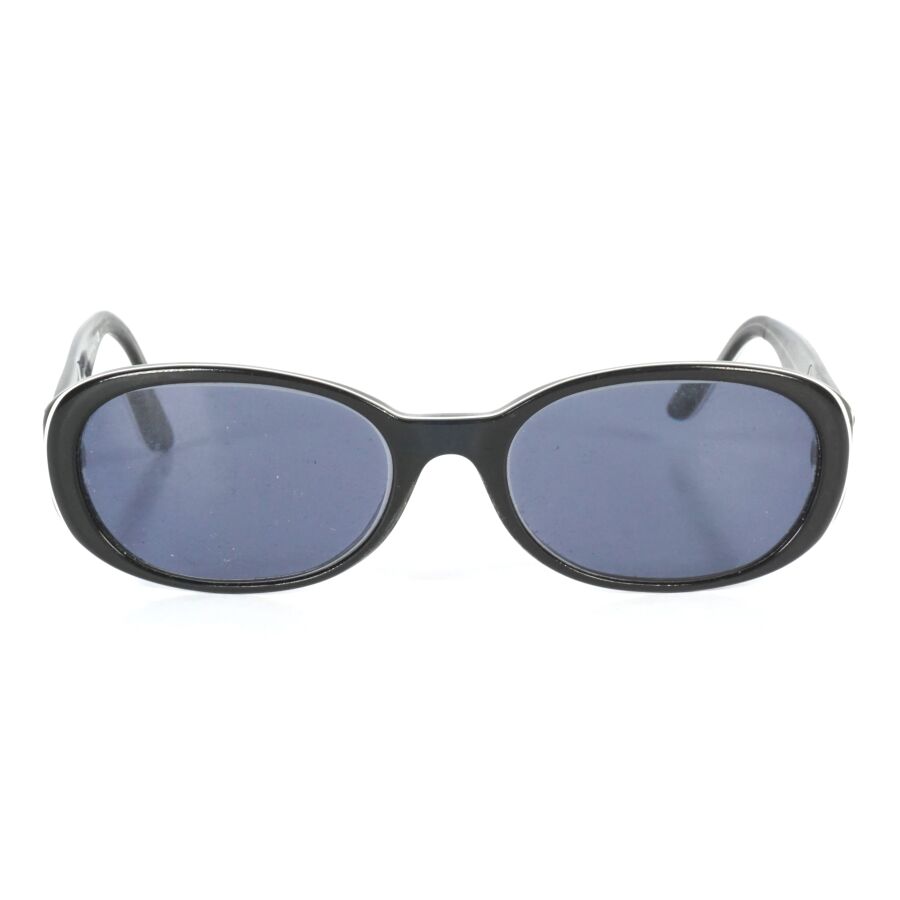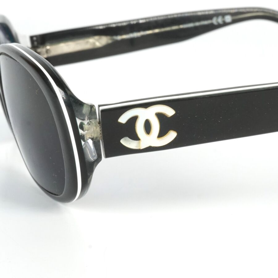 CHANEL : Paire de lunettes de soleil, noires, logotés en blanc, sans étui (usures).