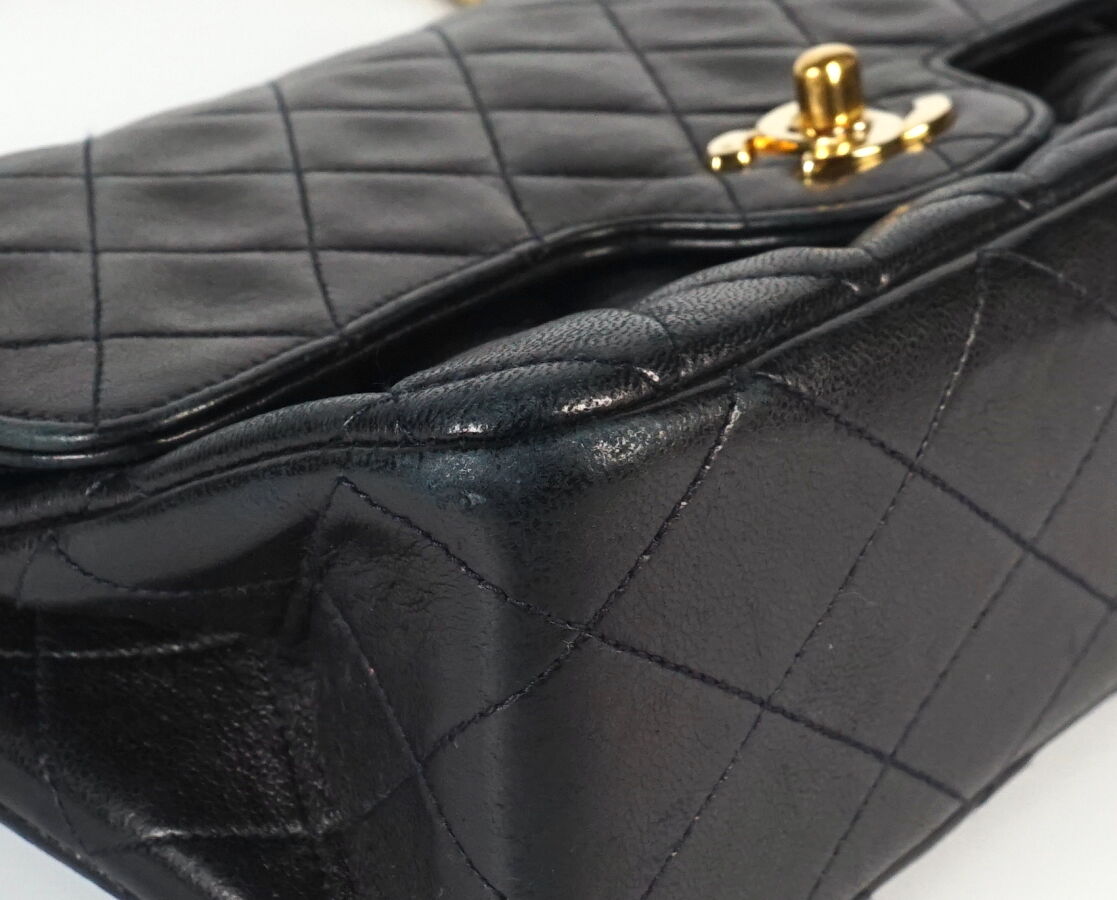 CHANEL : Sac "Classique 11.12" dit "Timeless" en cuir matelassé bleu marine, fermeture par double rabat, double anse bandoulière chaine et fermoir aux "C" entrecroisés en métal doré, intérieur cuir bordeaux, L. 22.5 cm.