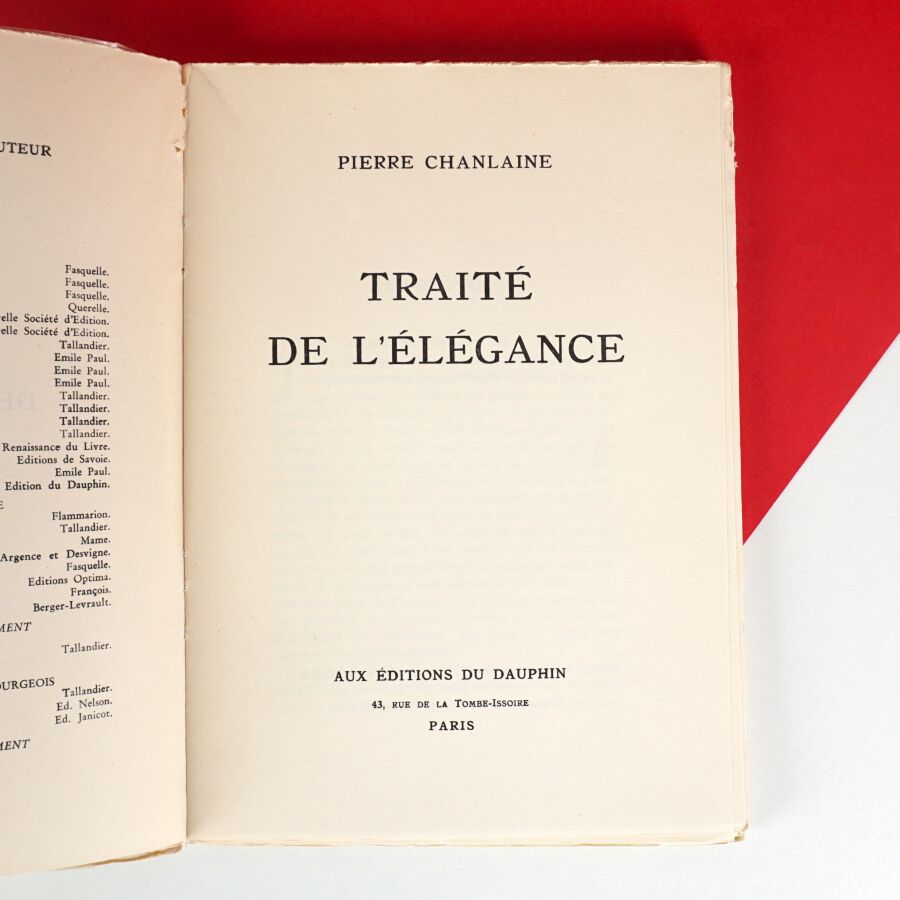 CHANLAINE (Pierre). Traité de l'élégance. Paris, Éditions du Dauphin, 1950. In-8 broché, couverture imprimée, en partie non coupé.