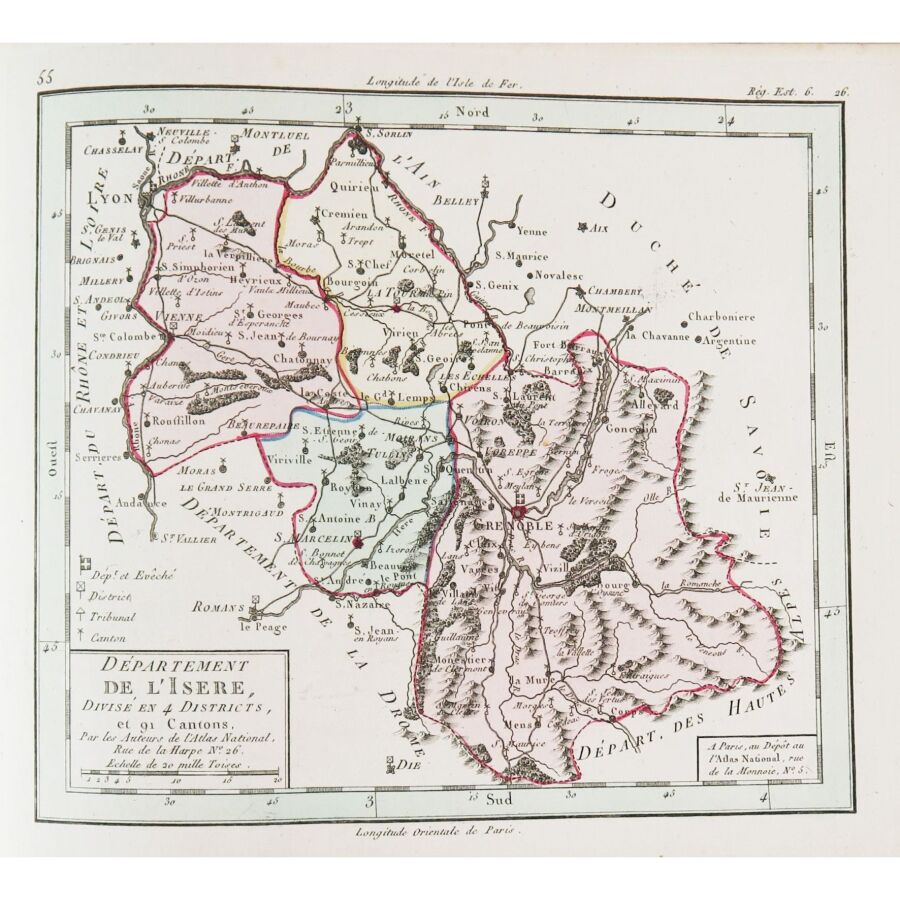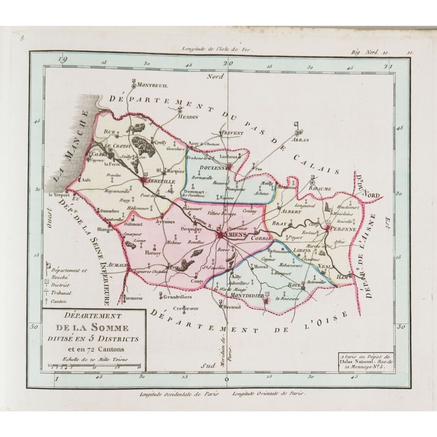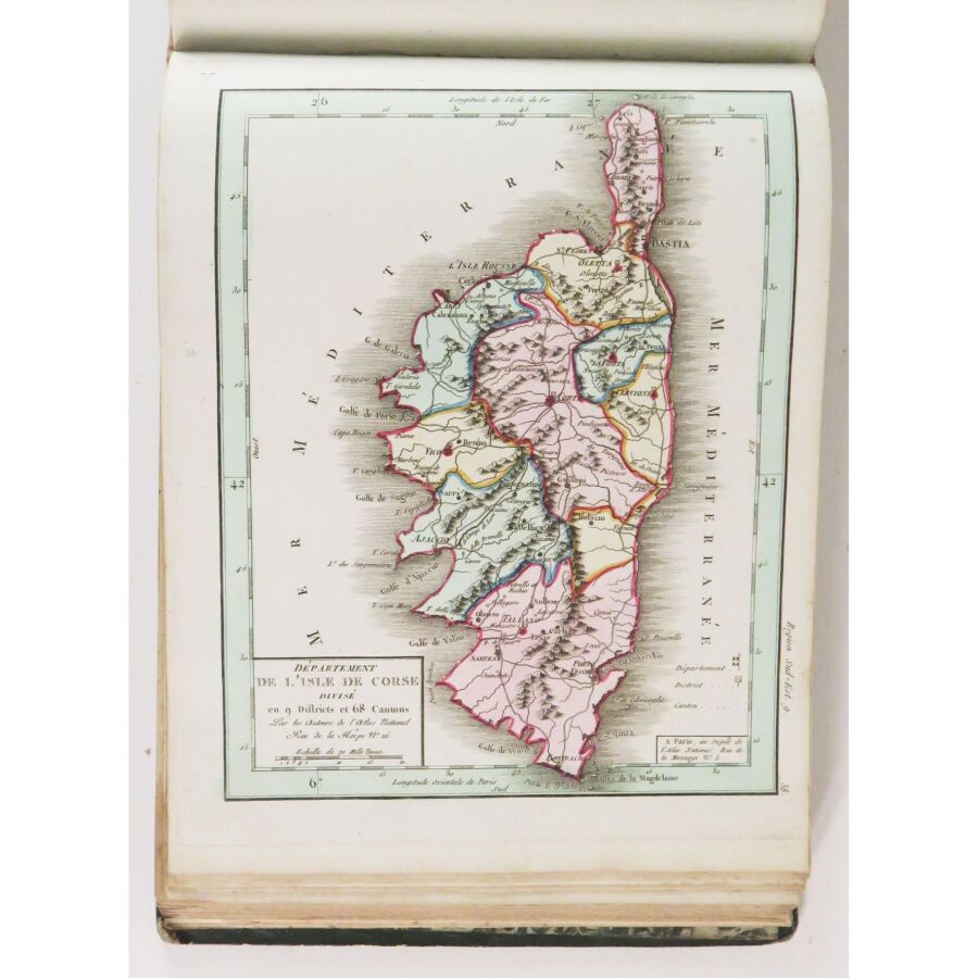 Édition originale illustrée d'un beau titre-frontispice, de 7 cartes générales de la France et de 83 cartes particulières des départements, le tout rehaussé en couleurs, ainsi que d'un planisphère et 2 cartes des colonies dont 1 plan de Pondichéry.