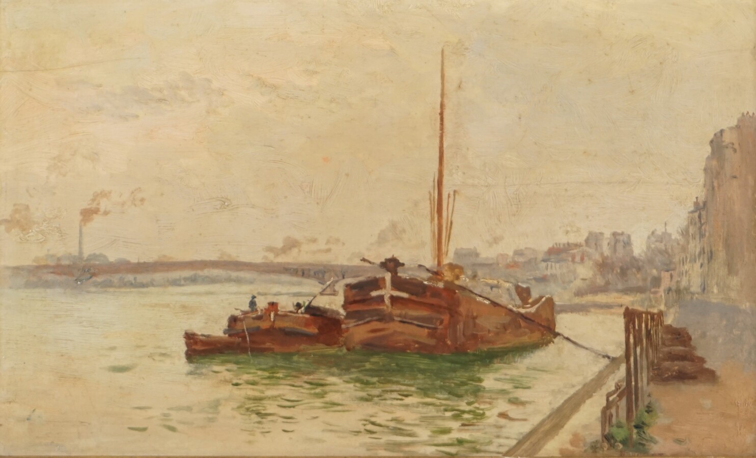 Charles BOUSQUET (1856-1946), "Les bords de Seine", huile sur panneau signée en bas à droite, 24.5 x 35 cm.