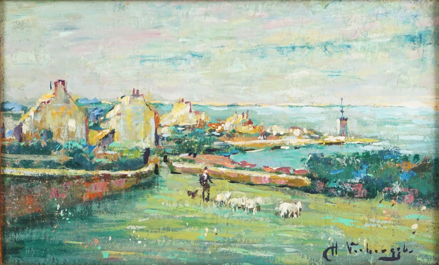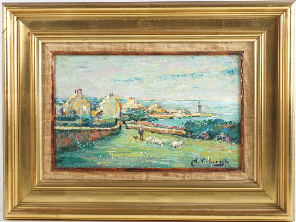 Charles Henri VERBRUGGHE (1877-1974), "Normandie" huile sur toile signée en bas à droite, située au dos, 20 x 33.5 cm.