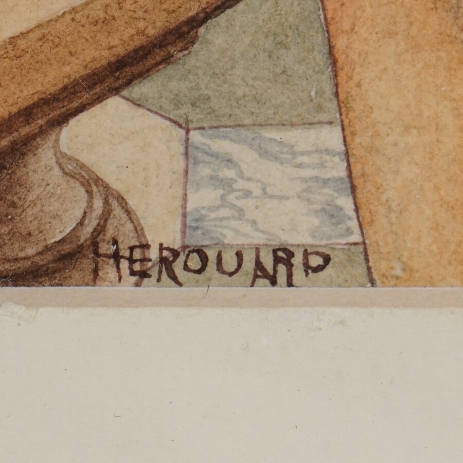 Chéri HEROUARD (1881-1961), "Luxure et festin au Moyen-Âge", dessin à l'aquarelle et encre sur papier, signé en bas à droite, 42 x 30 cm.