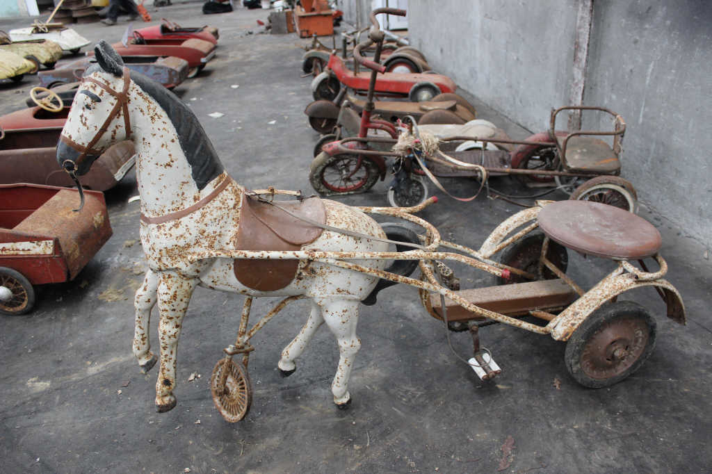 Cheval attelé en métal peint, H. 80 cm environ (en l'état)