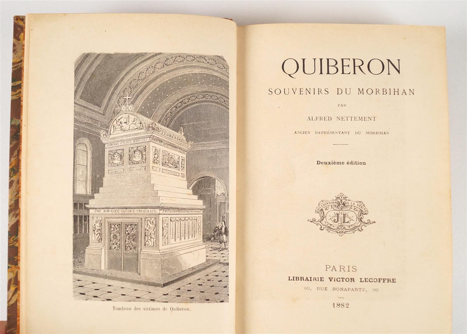 [CHOUANNERIE] - Ensemble de 2 volumes : NETTEMENT (Alfred) - Quiberon. Souvenirs du Morbihan - Paris ; Librairie Victor Lecoffre, 1882 - 1 volume In-12° - Quelques rares rousseurs éparses - Frontispice et illustrations gravées en noir in et hors texte - Reliure XXème siècle demi-basane havane - 1ère couverture conservée - Dos lisse orné de filets et titré or - Bon exemplaire - M. (M. A. de) - Étude sur l'affaire de la machine infernale du 3 nivôse an IX - Paris ; E. Lachaud, 1870 - 1 volume In-12° broché - Très bon exemplaire en grande partie non coupé.