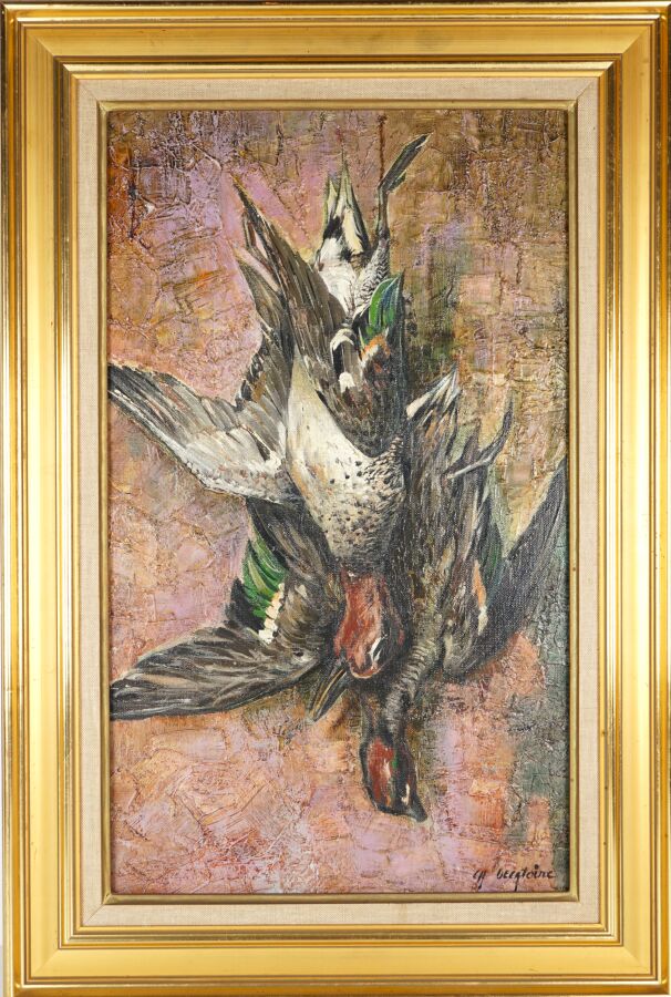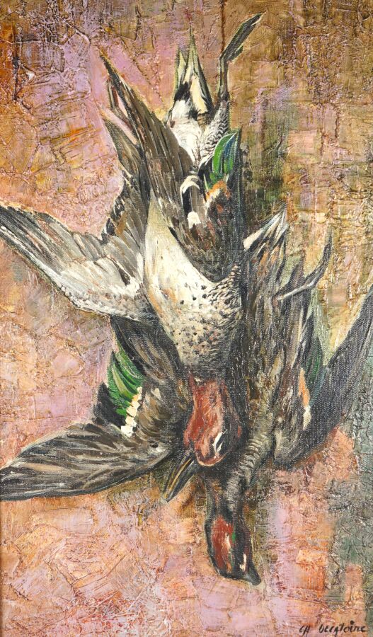 Christian DECATOIRE (XXe), "Nature morte au gibier", huile sur toile signée en bas à droite, 56 x 33 cm.