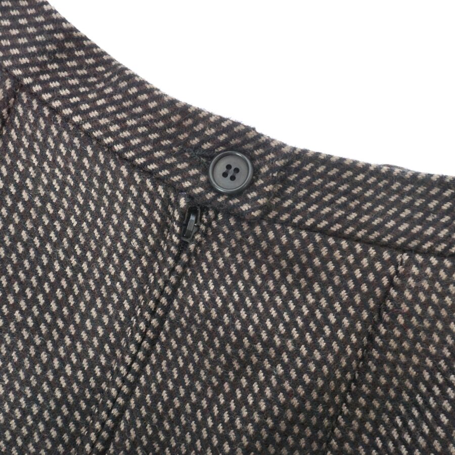 CHRISTIAN DIOR - BOUTIQUE : Jupe droite en laine à motif dit "Pieds de poule" gris sur fond brun foncé, fermeture à l'arrière par un crochet, un bouton et une fermeture zippée, étiquette intérieure, L. 68 cm. Larg. Taille : 34 cm (petits fils tirés).