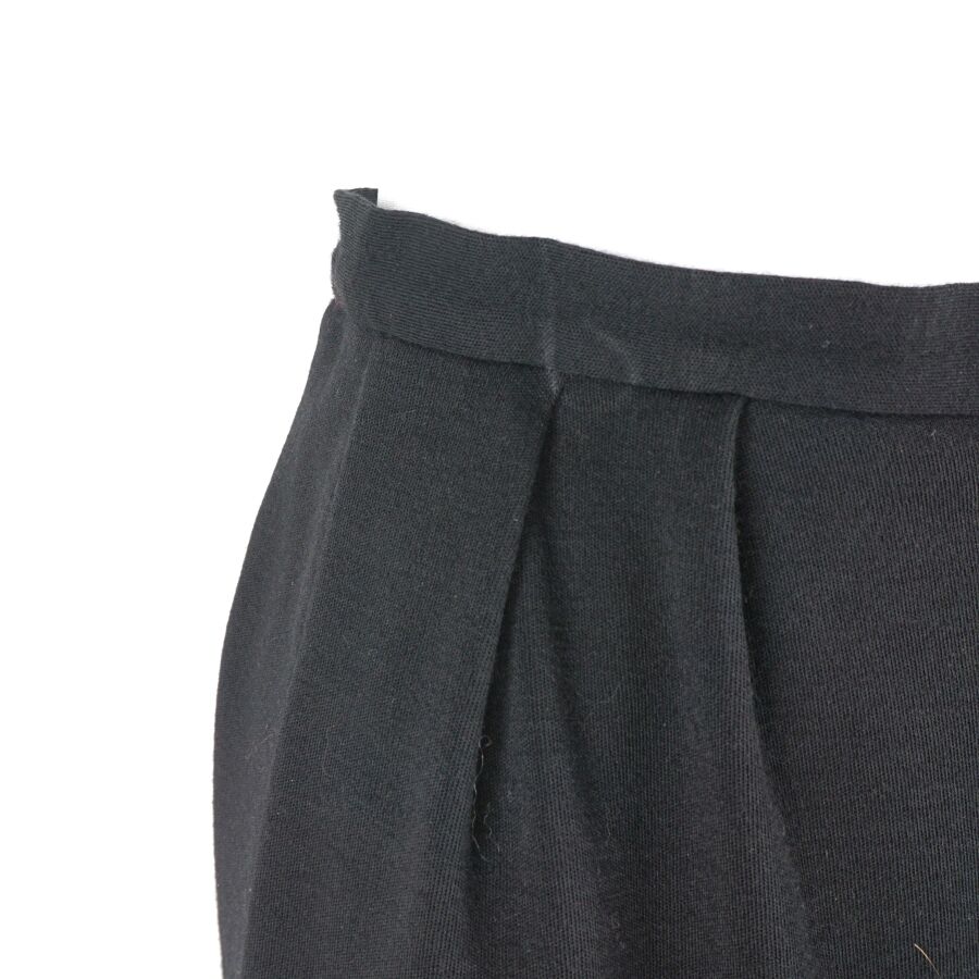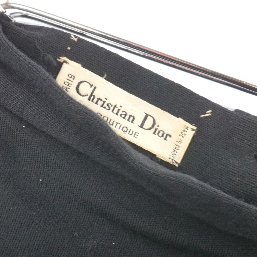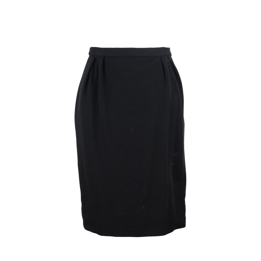 CHRISTIAN DIOR - BOUTIQUE : Jupe droite en laine de couleur noire, fermeture zippée à la taille et bouton, doublure en soie noire, deux poches latérales, étiquette intérieure, L. 56.5 cm. Larg. Taille : 35 cm (petits trous, quelques traces).