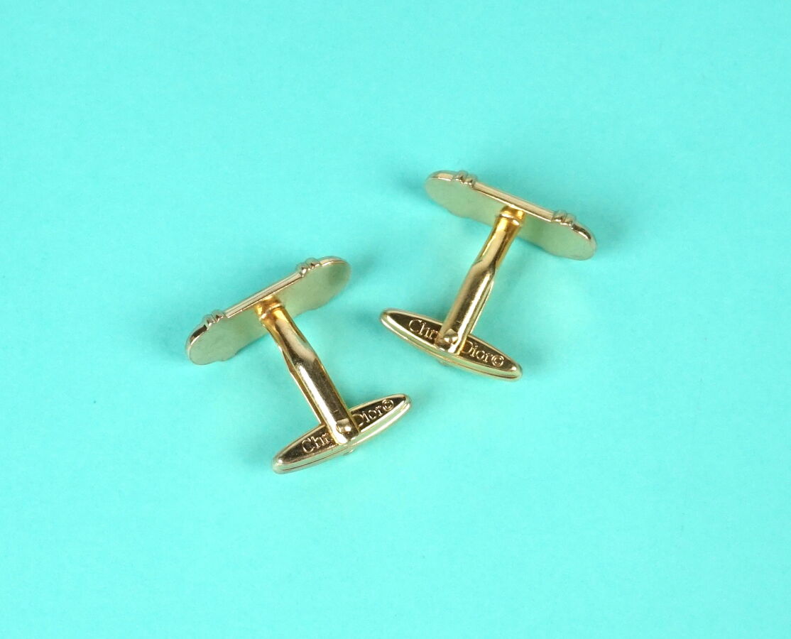 Christian DIOR : Boutons de manchette ovales en métal doré, à décor rainuré, signés, L. 2.2 cm