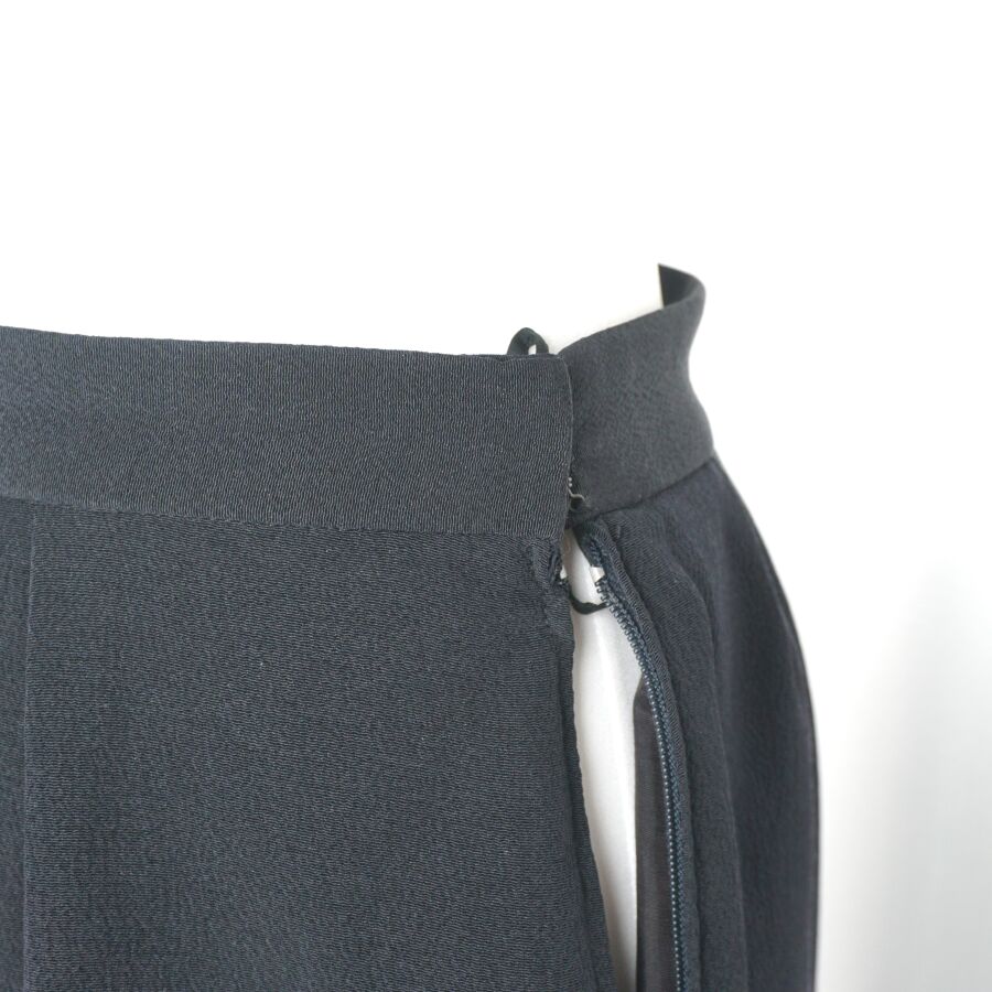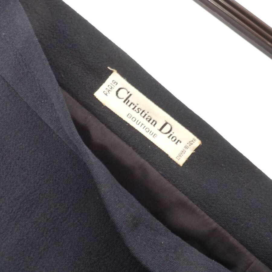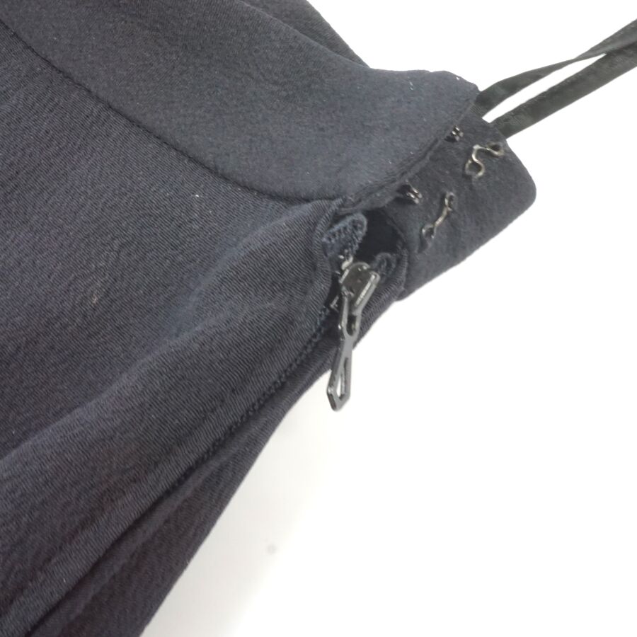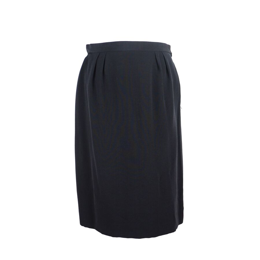 CHRISTIAN DIOR : Jupe en soie de couleur noire, fermeture à crochet à la taille et fermeture zippée, étiquette intérieure, avec doublure noire, présentée avec un cintre Dior Monsieur, L. 61.5 cm. Larg. Taille : 36 cm environ.