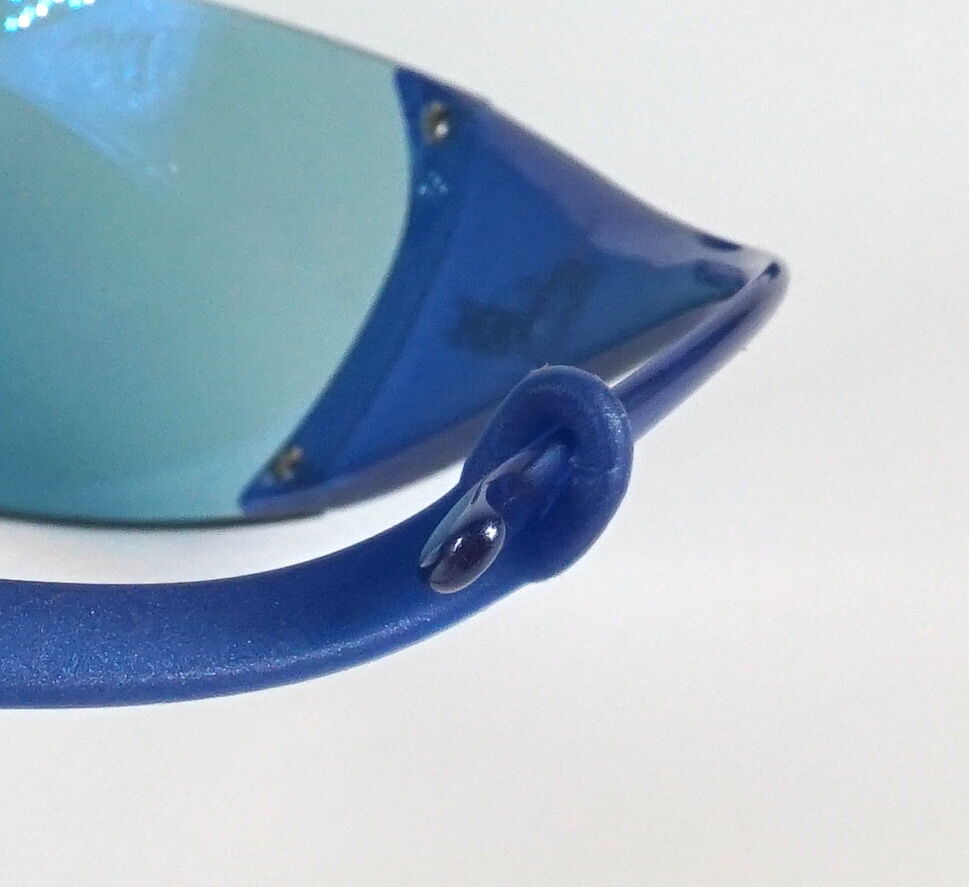 Christian DIOR : Lunettes de soleil "Golf", verres bleus, monture en plastique bleu, visière amovible, cordon souple ajustable siglé. (légères usure d'usage, bon état général).
