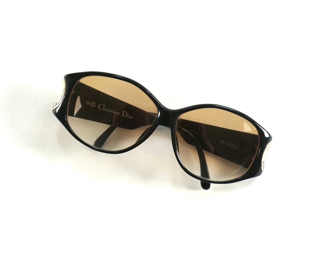 Christian DIOR Lunettes de vue, monture ovale cerclée noire, verres fumés.