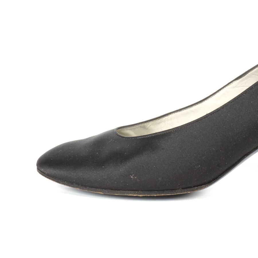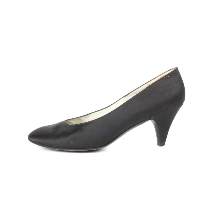 CHRISTIAN DIOR - SOULIERS : Paire d'escarpins en satin de couleur noir, taille supposée 39/40, présentée dans sa boîte d'origine, H. Talon : 6.5 cm (petites usures).