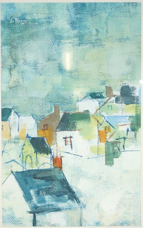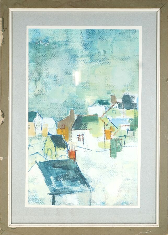 Christian HALNA DU FRETAY (1945), "Village" 80, huile signée et datée en haut à gauche, 44.5 x 27.5 cm (à vue).