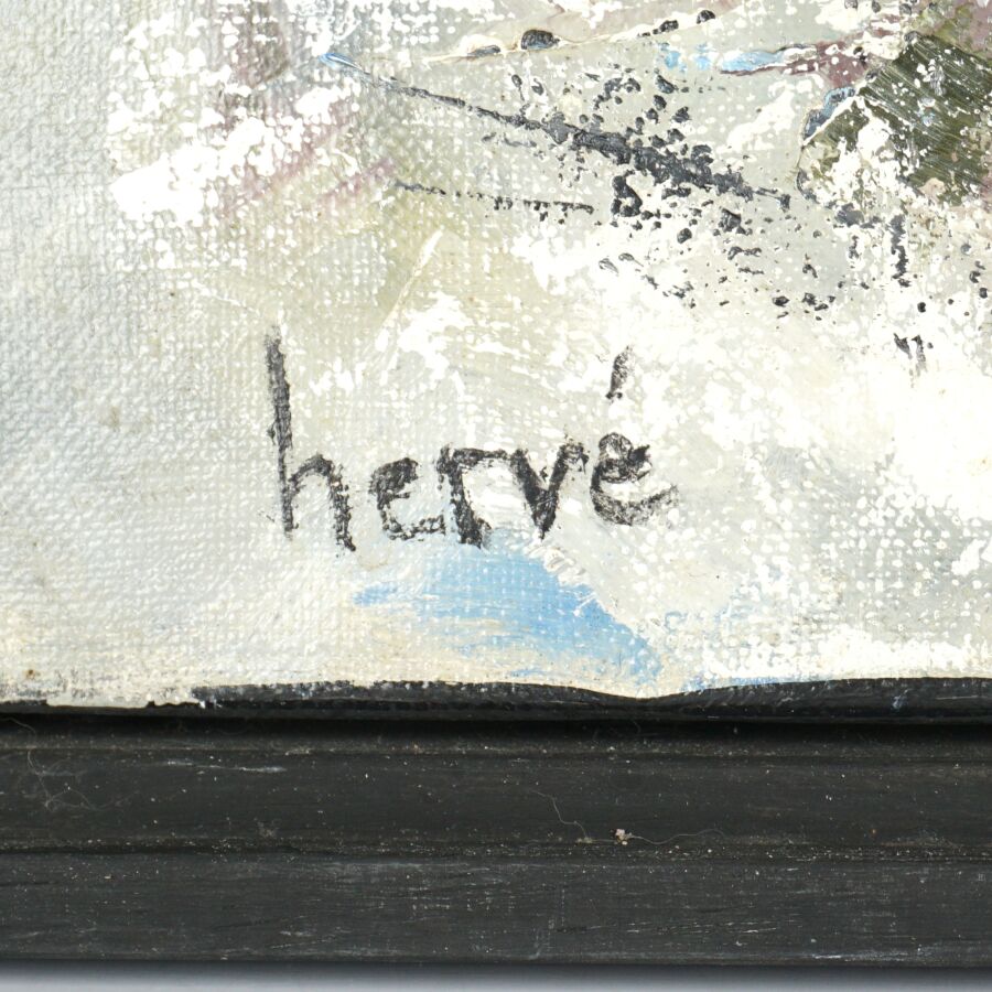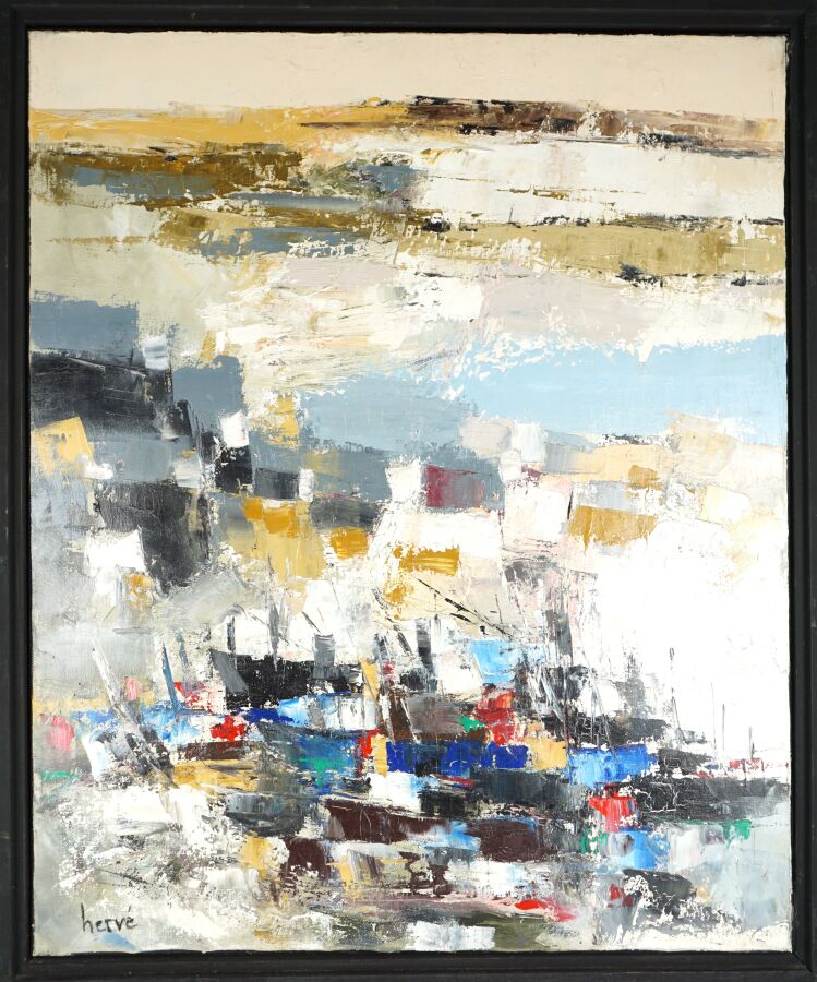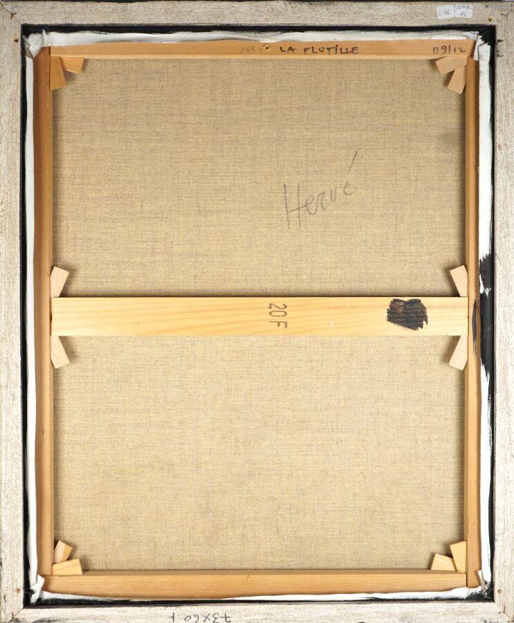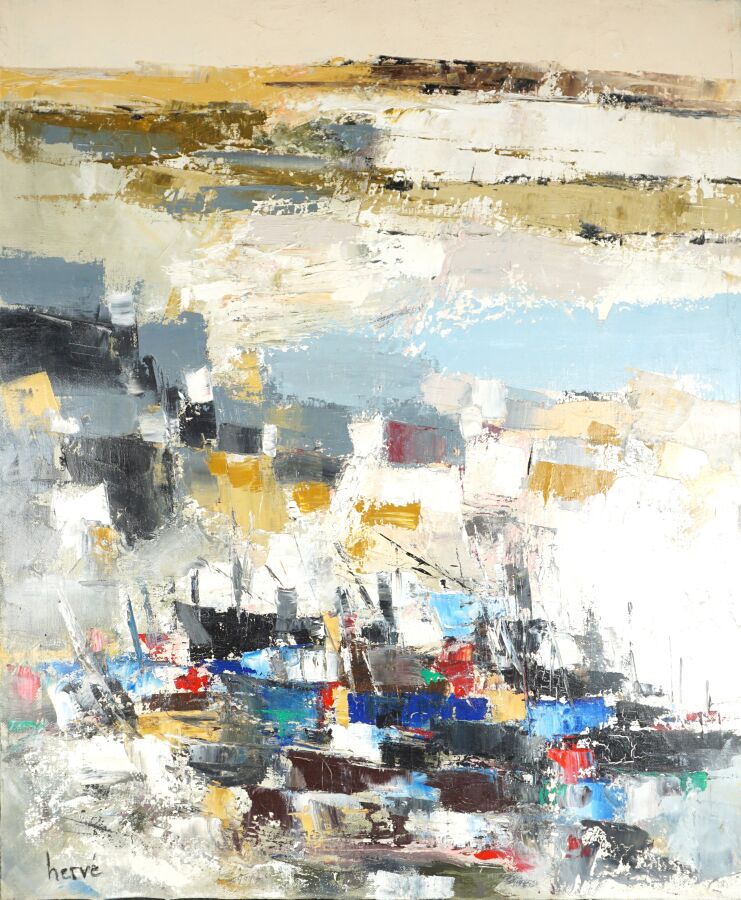 Christian HERVE (XX-XXIe), "La Flottille" 09.12, huile sur toile signée en bas à gauche, titrée et datée au dos, 73 x 60 cm.