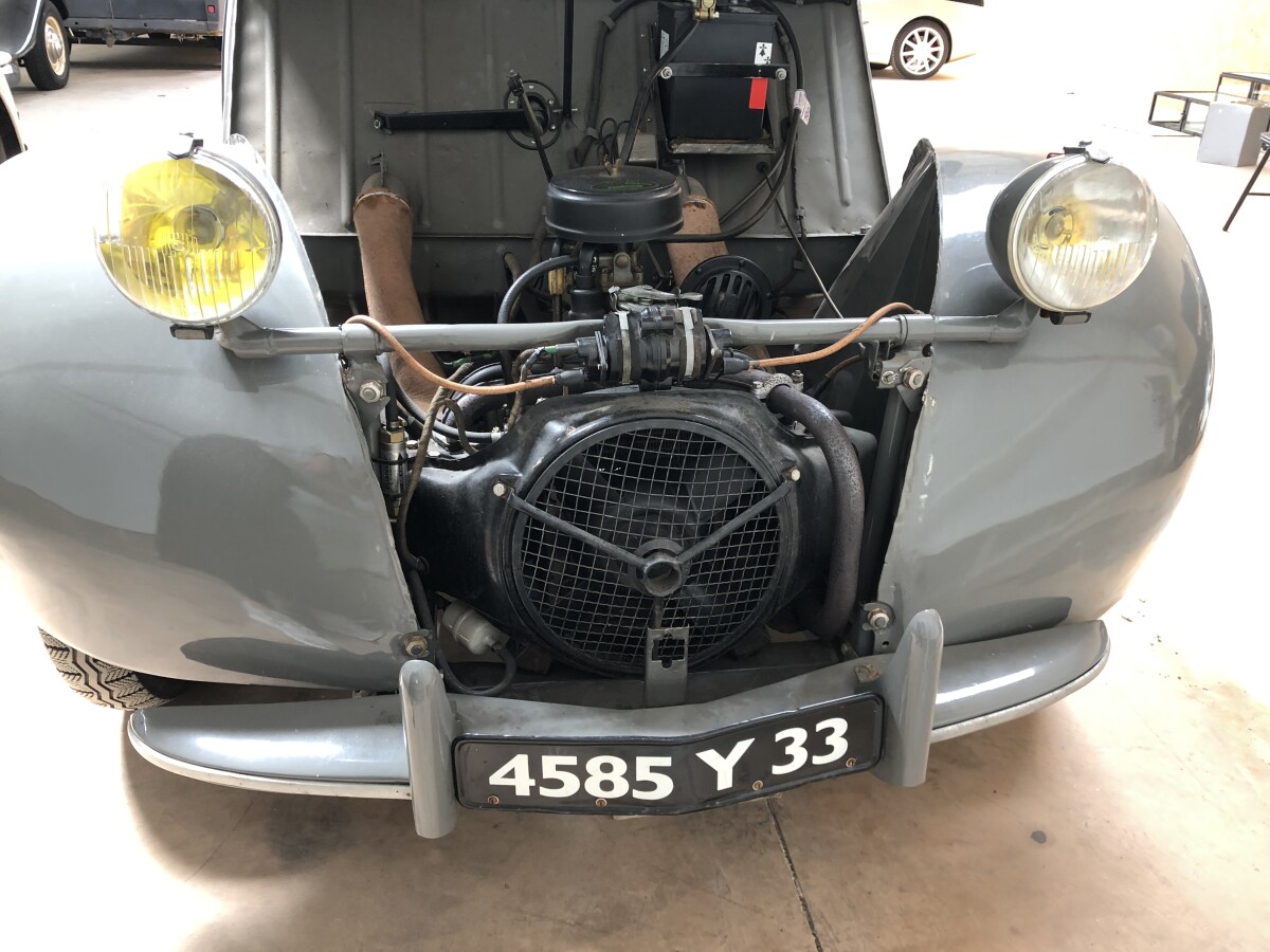 La carrosserie de ce véhicule est en bon état général. Les pneumatiques et les phares sont en bon état. Le véhicule a été conservé dans un garage fermé. Les amateurs de 2CV découvriront peut-être quelques originalités. Tout d'abord, sa malle arrière. Celle-ci n'est pas d'origine mais apporte une silhouette charmante à la 2CV. Elle ouvre donc sur un coffre comprenant la roue de secours. Pour ceux qui ont un oeil de lynx, vous remarquerez sans doute la plaque d'immatriculation. En effet, les numéros d'immatriculations originaux des 2CV ne comportaient qu'une seule lettre. Ici l'ancien propriétaire a voulu conserver ce détail mais à néanmoins pris les mesures pour circuler en tout légalité en réimmatriculant le véhicule.