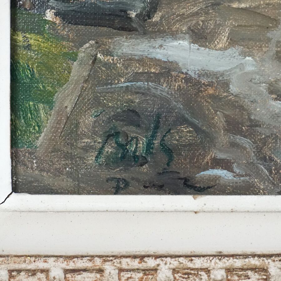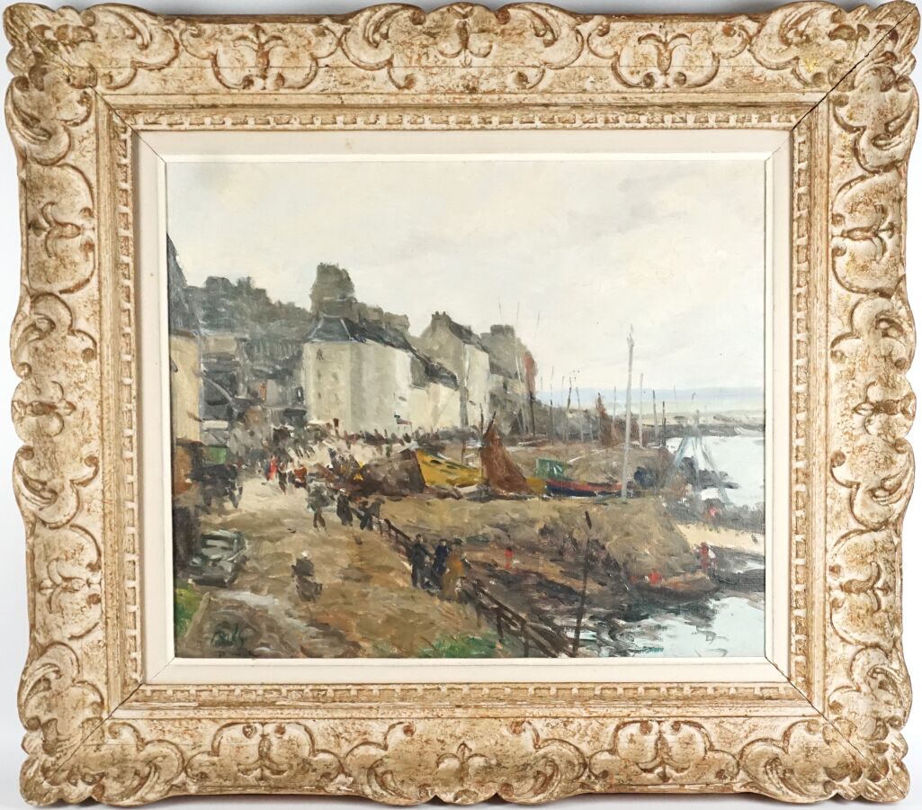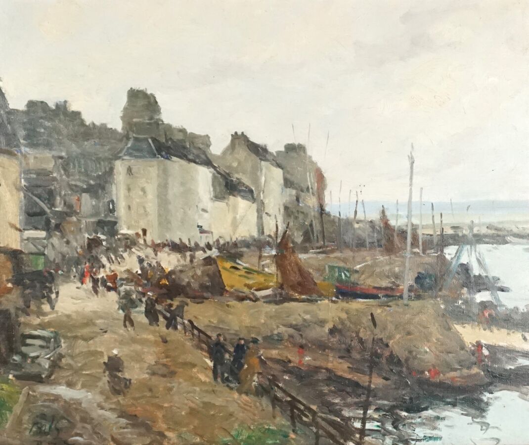 Claude BILS (1884-1968), "Port en Bretagne", huile sur toile signée en bas à gauche, 46 x 55 cm.