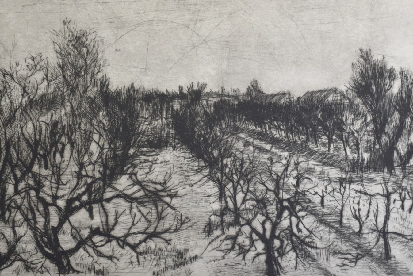 Claude BRETON (1928-2006) "Verger en Hollande", lithographie, signée en bas à droite, 23 x 31.5 cm