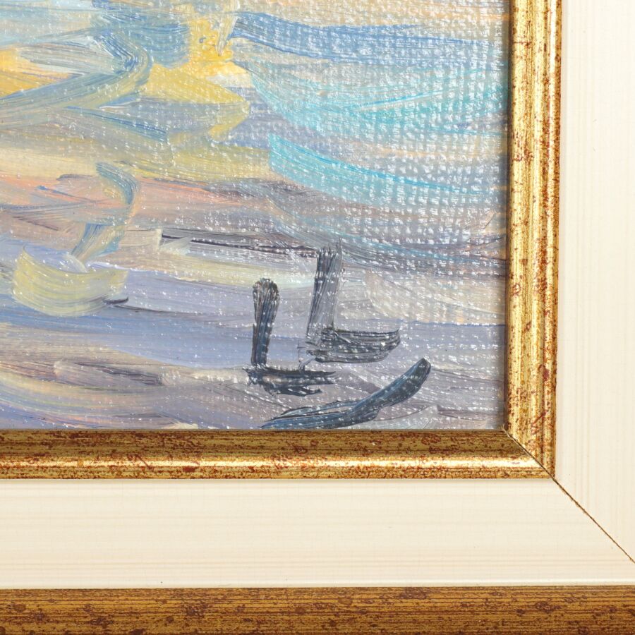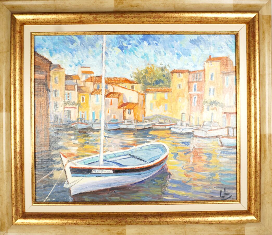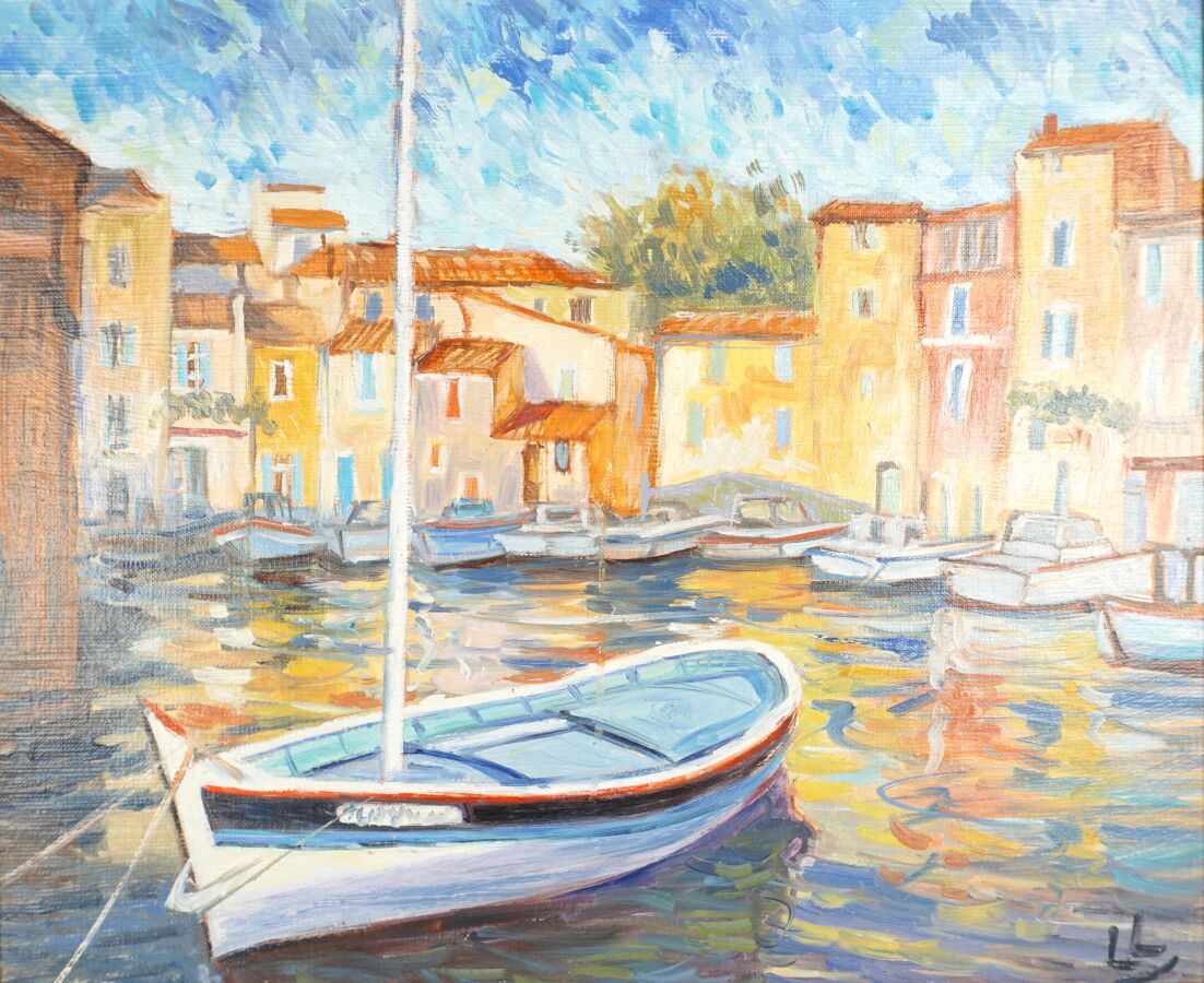 Claude CARVIN (1956), "Les couleurs de Martigues", huile sur toile, signée en bas à droite, titrée au dos, 37,5 x 44,5 cm.
