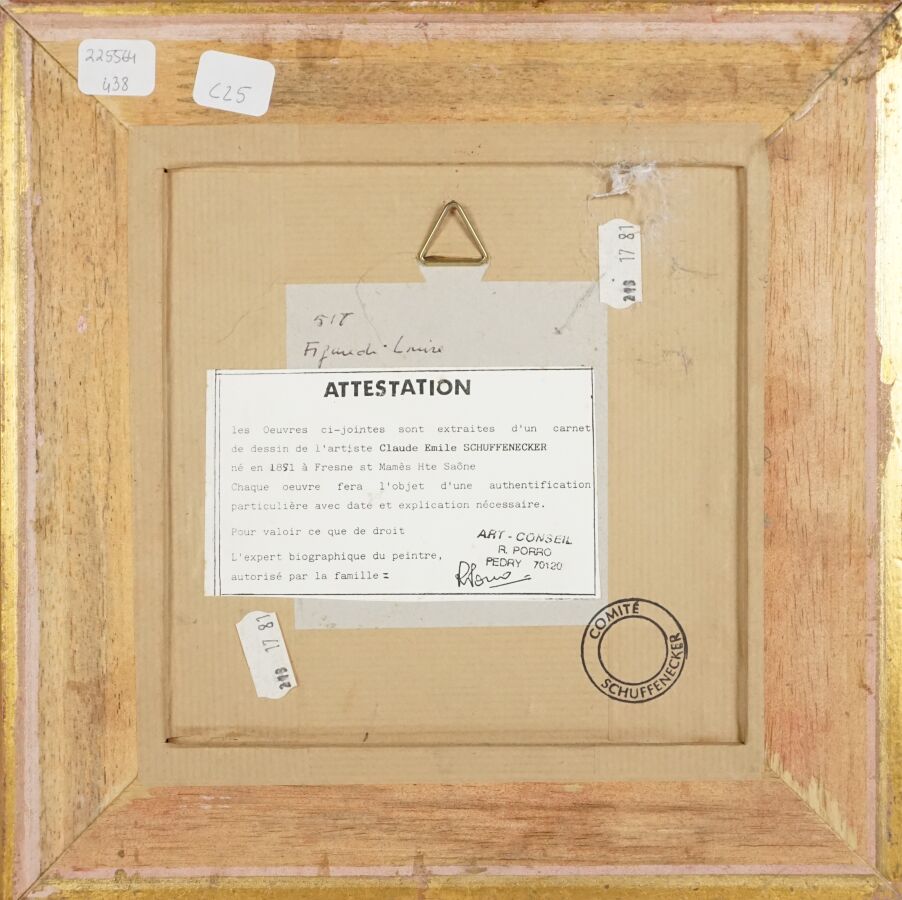 Claude Emile SCHUFFENECKER (1851-1934), "Portrait", dessin sur papier, non signée, porte au dos le tampon de Comite de l'artiste, 10 x 9 cm (à vue).