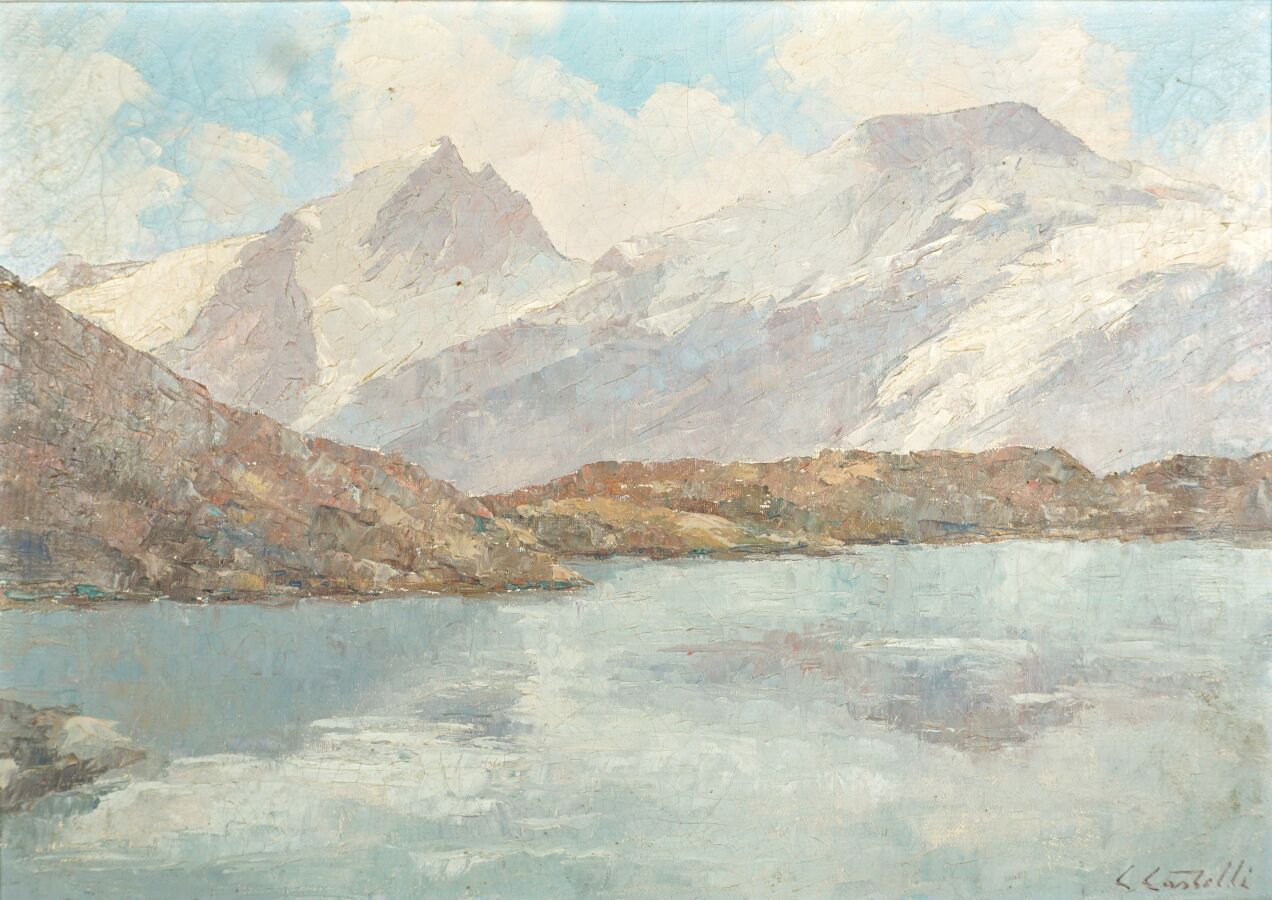 Clément CASTELLI (1870-1959), "La neige au lac Lérié", huile sur toile signée en bas à droite, contresignée et titrée au dos, 33.1 x 46.2 cm (petites écaillures).