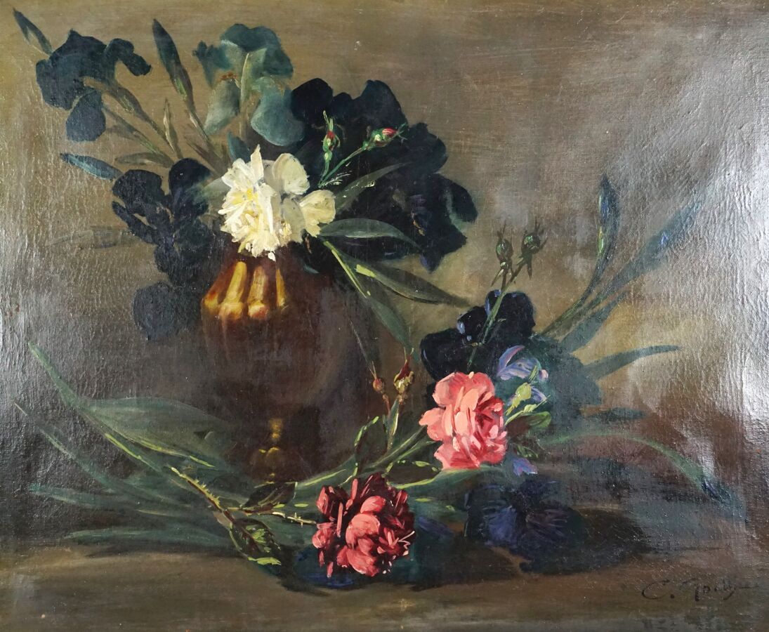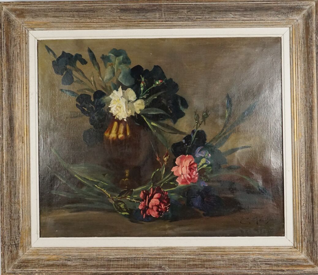 Clément GONTIER (1876-1918), "Nature morte aux roses", huile sur toile signée en bas à droite, 50 x 61 cm (écaillures, légers manques).