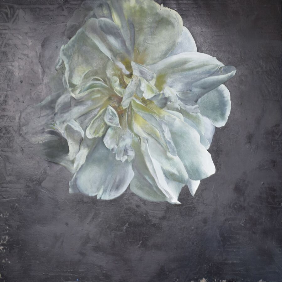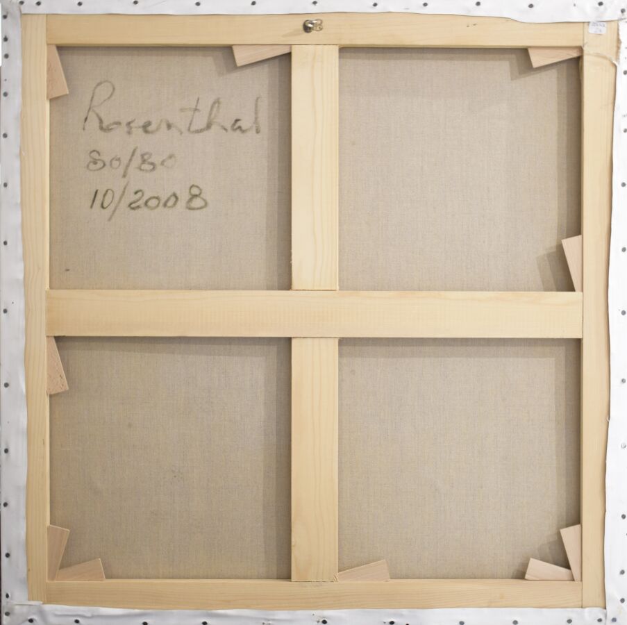 Clément ROSENTHAL (1956), "Pivoine", huile sur toile, signée, datée et numérotée au dos, 80 x 80 cm (manques, traces de colle).