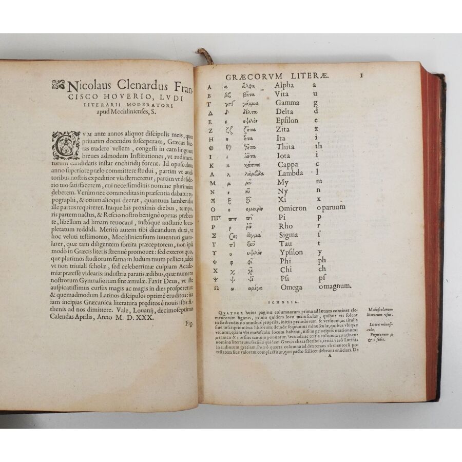 Nicolaus Clenardus ou Cleynaerts (1495-1542) était un humaniste et grammairien flamand, actif à Louvain, Salamanque, Grenade puis Fès, où il apprit l'arabe tout en enseignant le latin et le grec. Son oeuvre majeure, les Institutiones, parut pour la première fois en 1530 et connut un immense succès : entre 1530 et 1561, quarante éditions furent publiées dans divers centres européens, auxquelles s'ajoutèrent neuf éditions combinant les Institutiones et les Meditationes. Ces ouvrages firent l'objet de nombreux commentaires et rééditions savantes.