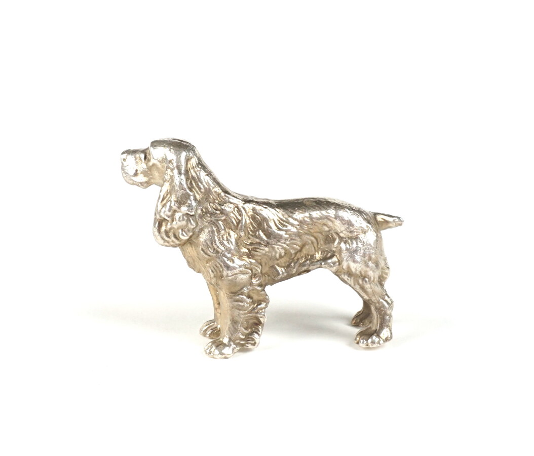 "Cocker", sujet en argent, poinçon Minerve 1er titre, formant presse-papier, L. 7.5 cm. Poids brut : 195 g environ.