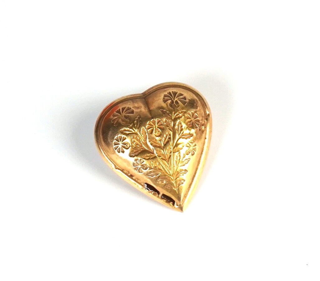 Coeur coulissant en or jaune 18K (750/oo), H. 3.5 cm (accidents). Poids brut : 2.2 g environ.