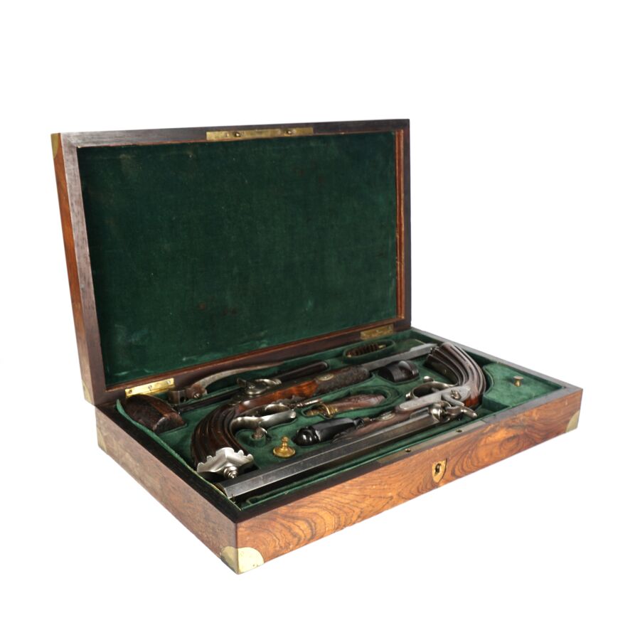 COFFRET CASSETTE NECESSAIRE DE PISTOLETS D'OFFICIER OU DE DUEL comprenant :