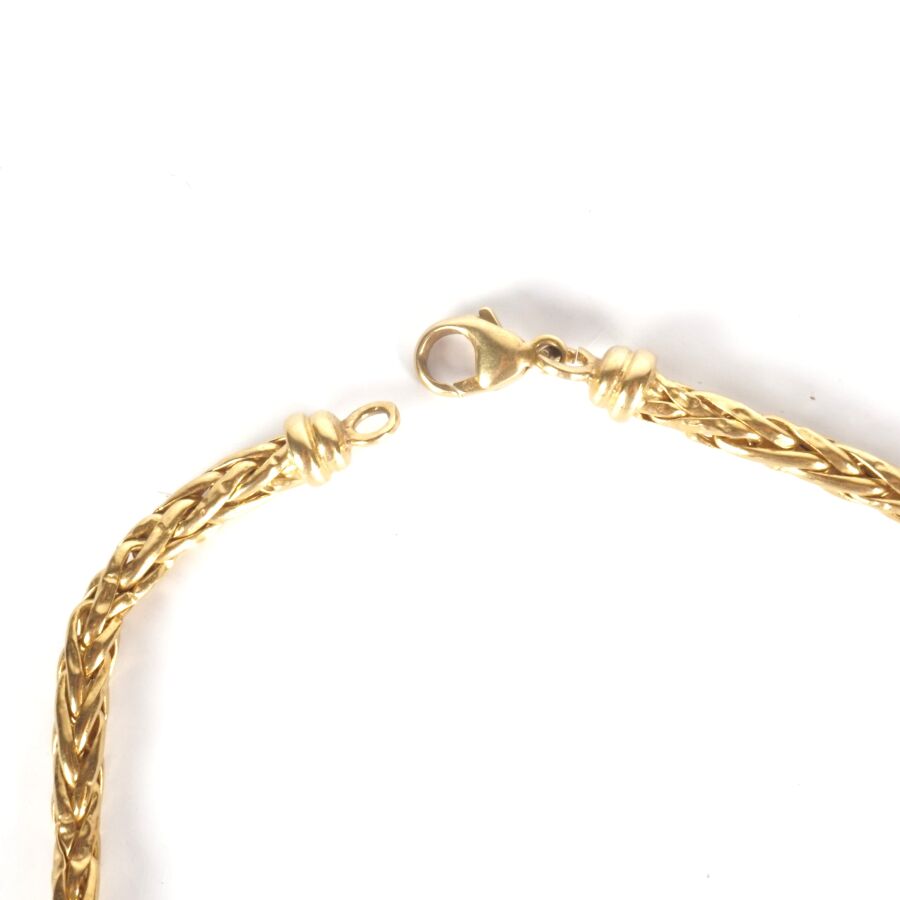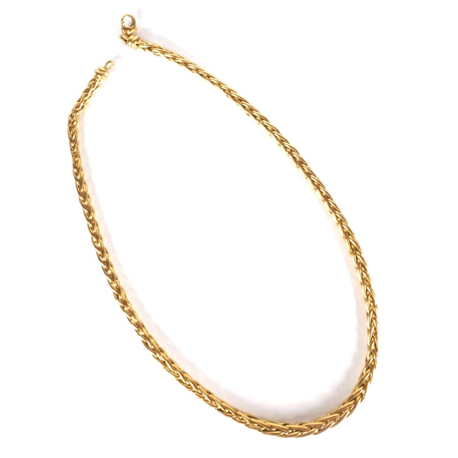 Collier en or jaune 18K (750/oo), maille palmier, fermoir mousqueton, L. 42 cm. Larg. 5 mm. Poids brut : 16.7 g environ.