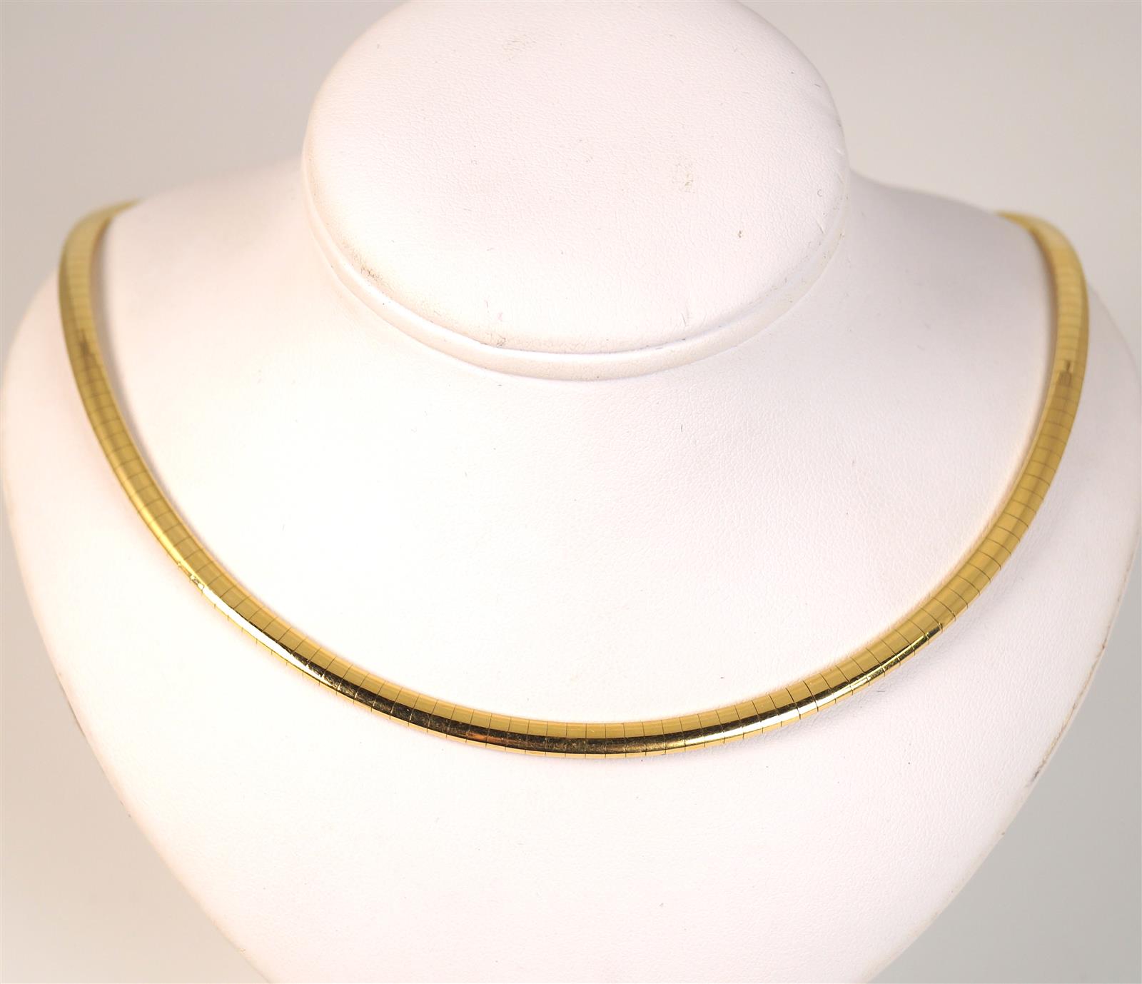 Collier semi-rigide en or jaune 18 K (750/oo), maille type "Omega", L. 42 cm. Poids brut : 30.62 g environ.