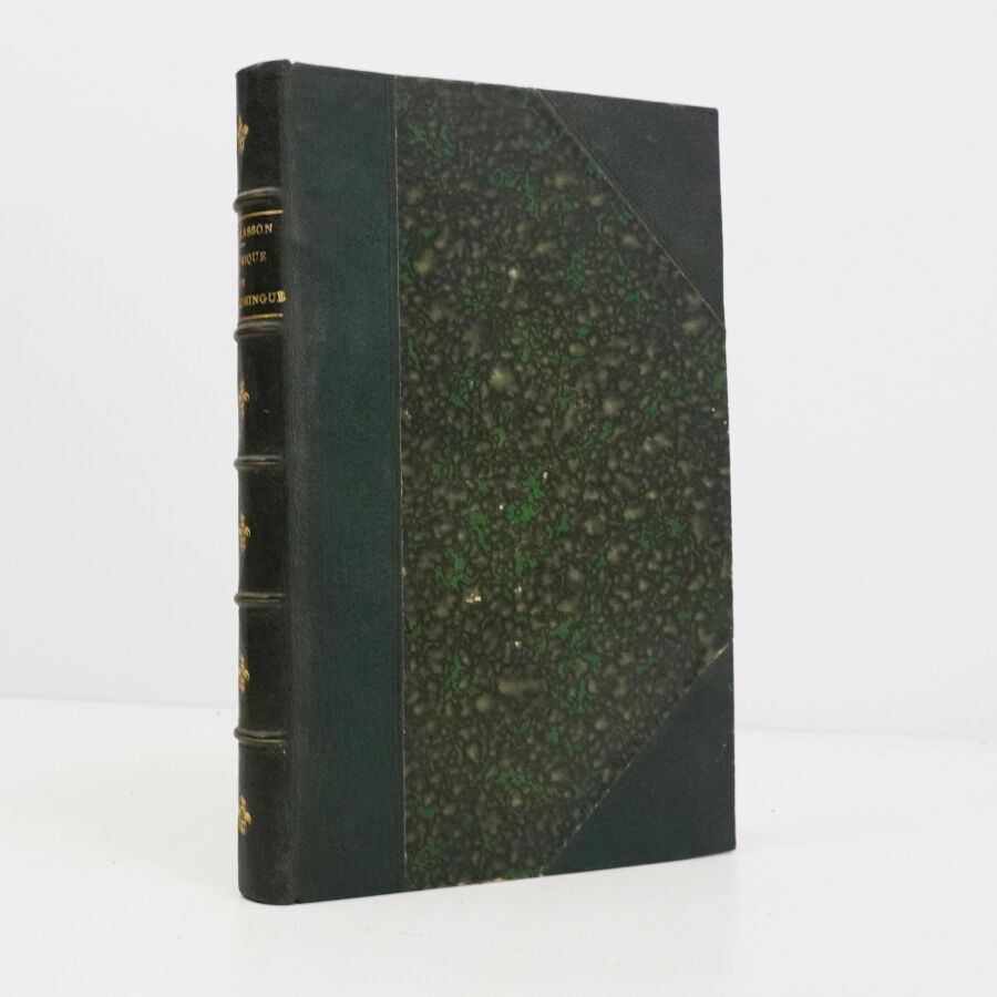 Demi-maroquin vert à coins, dos à nerfs orné, titre doré (reliure 19e siècle). Lég. mouillures claires marginales par endroits. Intéressante provenance en rapport avec le sujet de la famille Fournier de Bellevue (Berry, Saint-Domingue, Bretagne). Jean-Jacques Fournier de Varennes, dit le marquis de Bellevue (né en 1739 à Saint-Domingue, mort guillotiné à Paris en 1794), était un officier, planteur esclavagiste et écrivain. Issu d'une grande famille malouine implantée à Saint-Domingue depuis 1675, il hérite d'importantes habitations sucrières situées à Rocou, Limonade et Limbé. Figure influente du Cap-Français, Fournier de Varennes occupe plusieurs fonctions : commandant de milice, membre de la chambre d'agriculture, et collaborateur de Médéric Louis Élie Moreau de Saint-Méry pour la rédaction des "Lois et constitutions des colonies françaises de l'Amérique sous le vent". Partisan de l'ordre colonial et lié au club Massiac, il est arrêté pendant la Terreur et guillotiné en juin 1794, quelques mois après le traité de Whitehall.