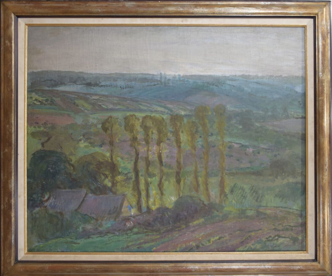 Constantin KOUSNETSOFF (1863-1936), "Paysage de Bretagne", huile sur toile signée en bas à gauche, contresignée et titrée au dos, 81 x 100 cm.