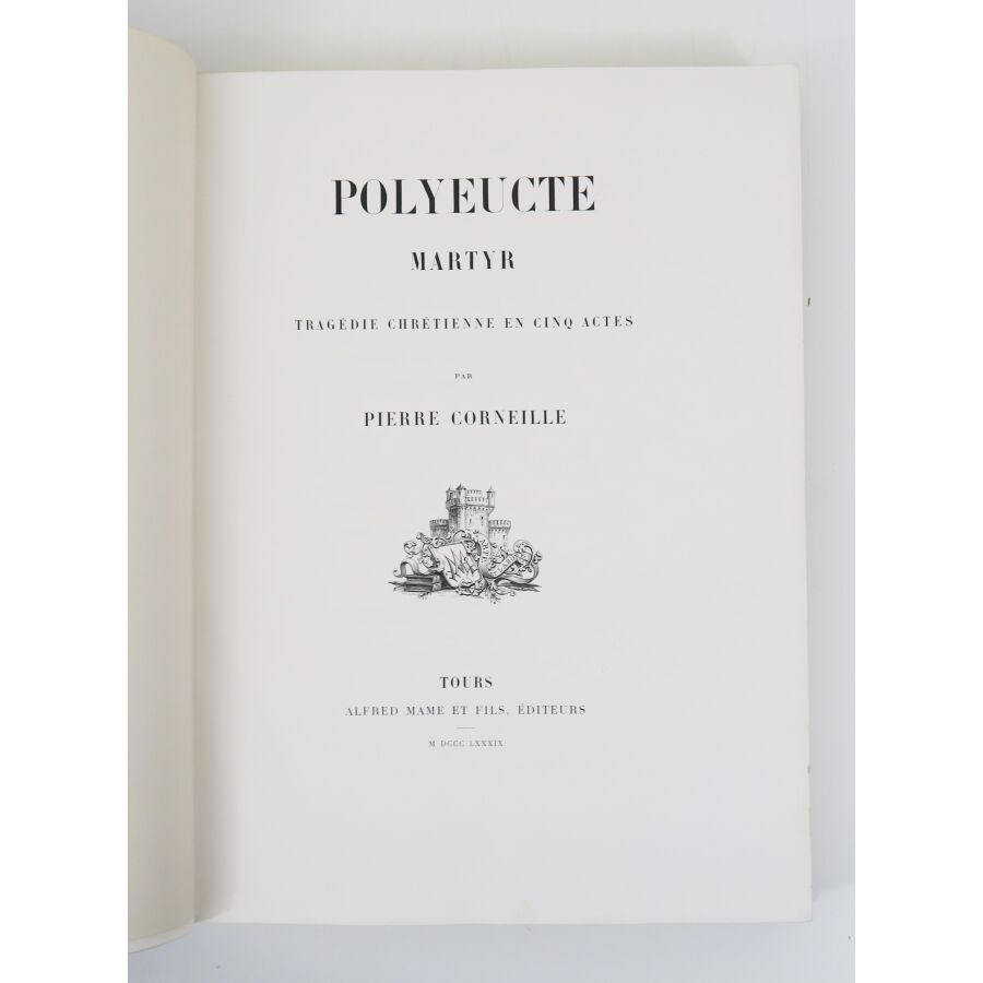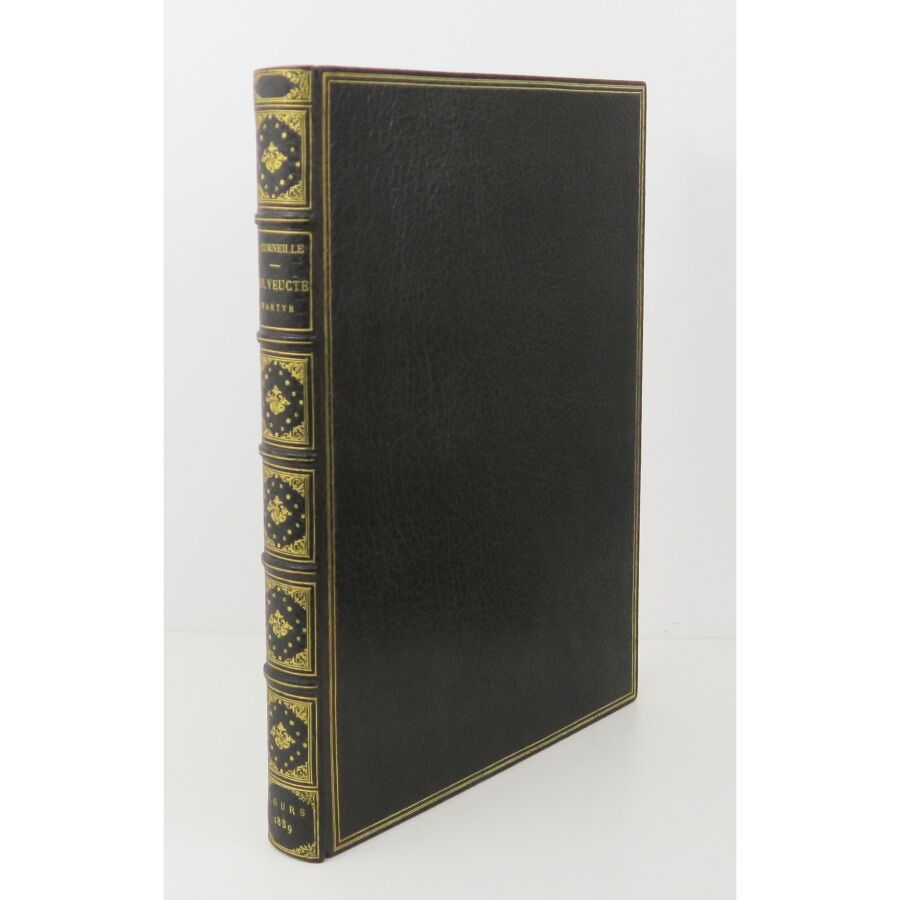 CORNEILLE (Pierre). Polyeucte martyr tragédie chrétienne en cinq actes. Tours, Mame, 1889. In-folio, maroquin bleu nuit, dos à nerfs richement orné, triple filet doré encadrant les plats, double filet doré sur les coupes, large dentelle intérieure, tête dorée, sous étui (reliure de Franz Ostermann avec son étiquette).