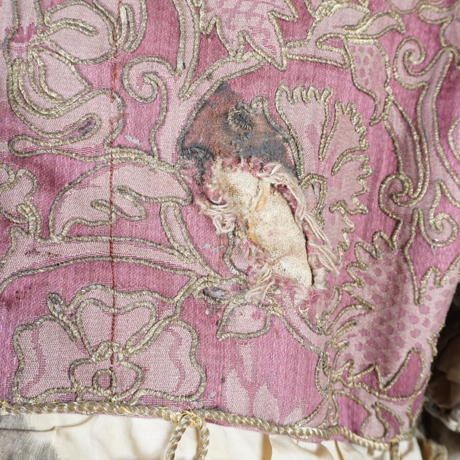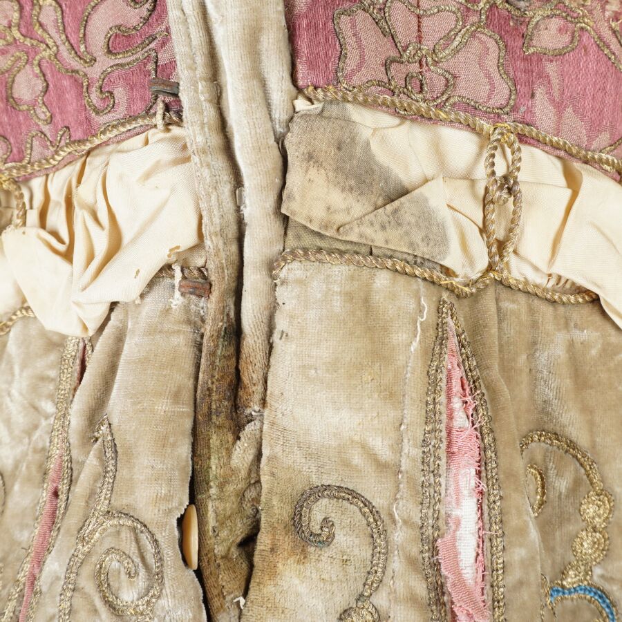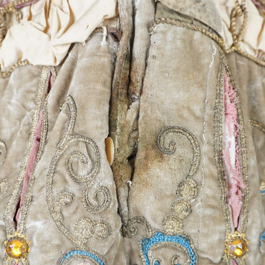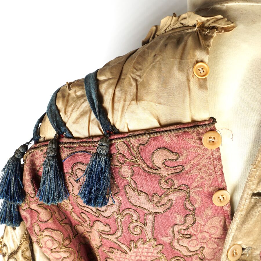 Costume de théâtre à décor brodés de feuillages et arabesques, dans l'esprit de la Renaissance (en l'état, tâches, déchirures).